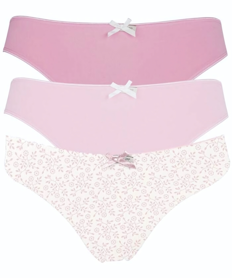 В упаковке вы найдете три пары трусиков: две однотонные (ярко-розовая и светло-розовая) и одну с нежным цветочным узором. Все модели выполнены с учетом современных тенденций и подчеркивают вашу индивидуальность. Не упустите возможность добавить этот стильный набор в свой гардероб!