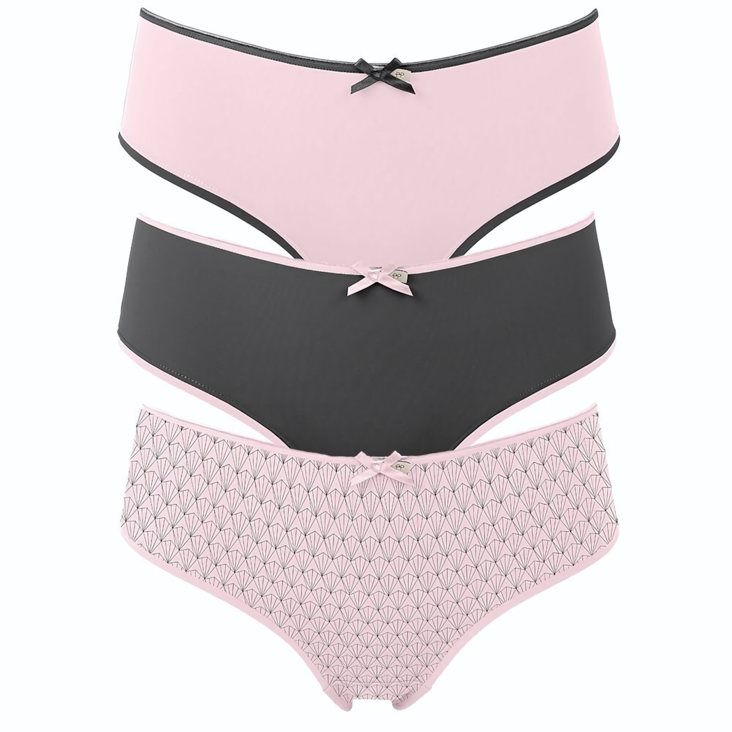 Трусики-шортики Olivia подходят для женщин, которые ценят комфорт и стиль. Их можно носить под любую одежду, они идеально подходят как для повседневной носки, так и для особых случаев. Набор включает три разных дизайна: светло-розовые, серые и с геометрическим узором, что позволяет вам разнообразить свой гардероб.