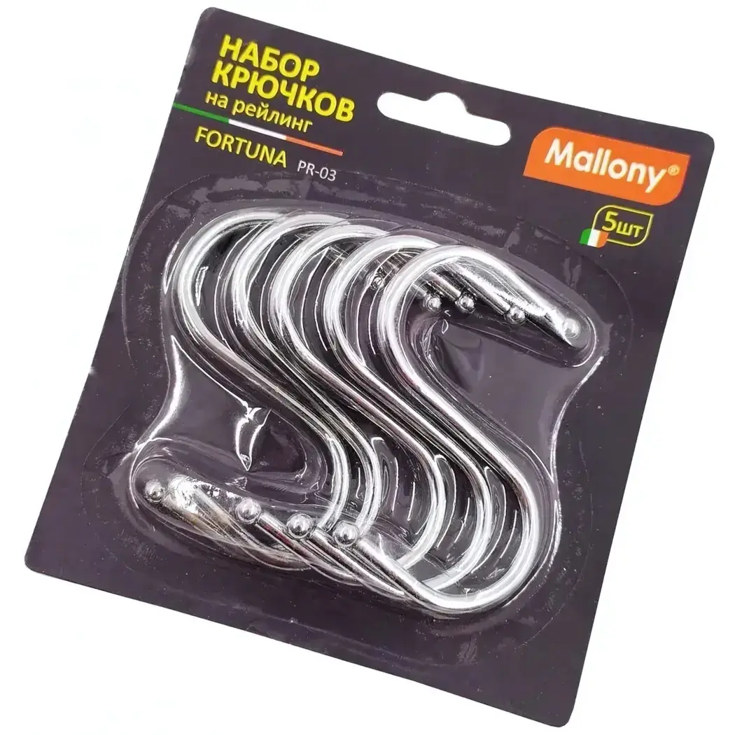 Набор крючков «FORTUNA PR-03» для рейлинга, 5 шт, S-образные, хромированные, металл