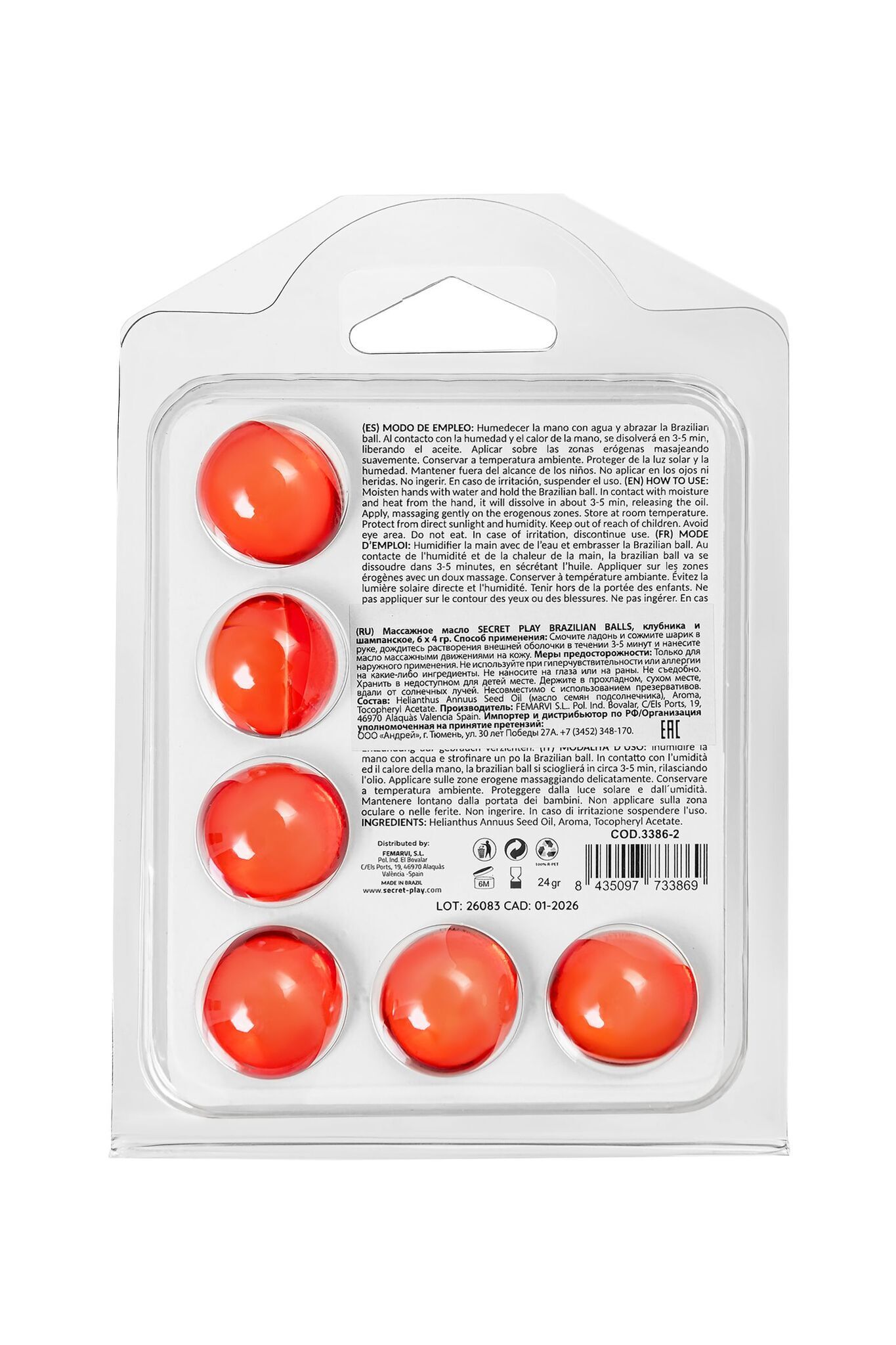 Набор массажных шариков «Brazilian Balls», аромат шампанского и клубники, 6 шт по 4 гр