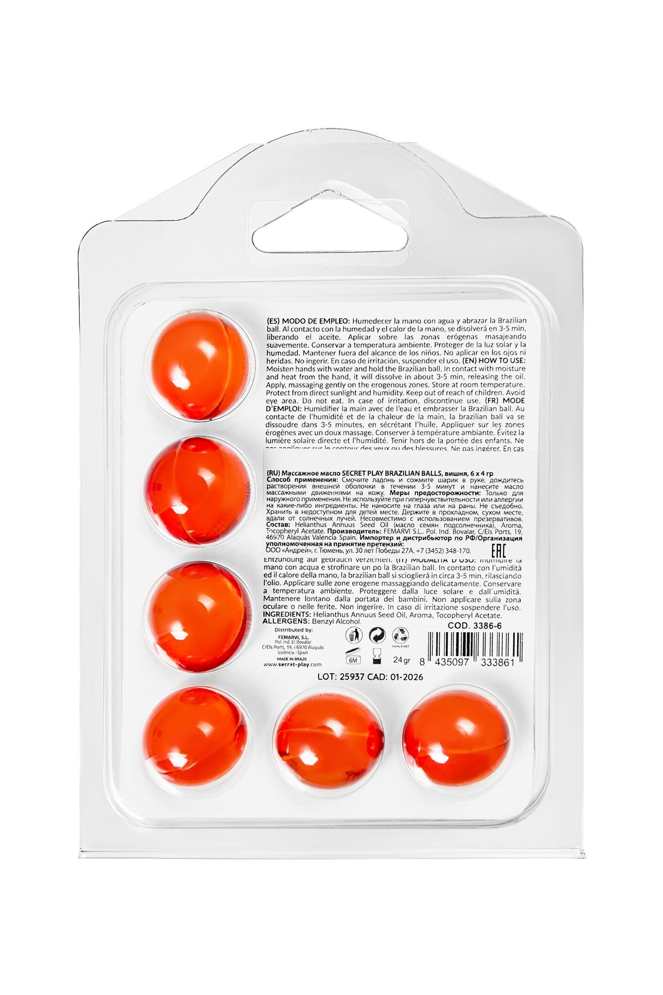 Набор массажных шариков 'Brazilian Balls Cherry', 6 шт. по 4 гр, аромат вишни, Secret Play