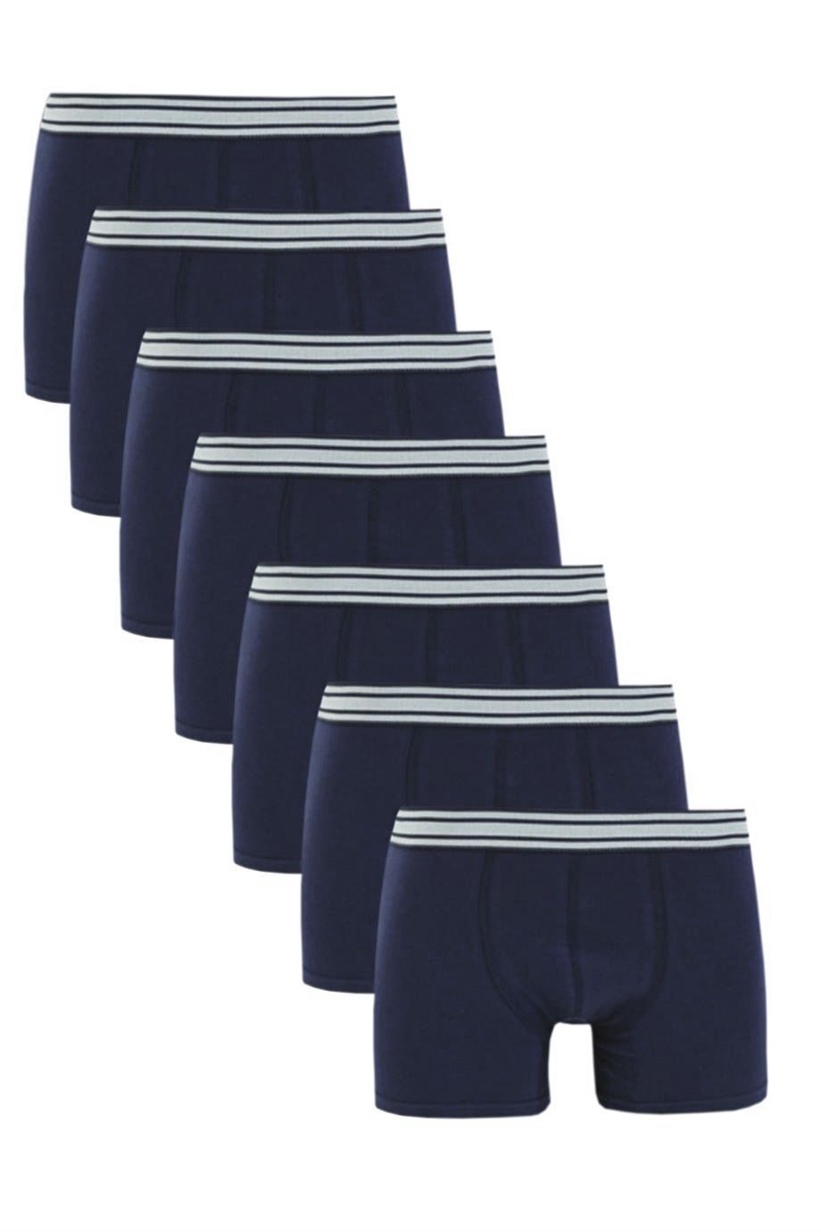 Представляем вам набор из 7 темно-синих трусов-боксеров, которые обеспечат вам максимальный комфорт и уверенность в любой ситуации. Изготовленные из высококачественного материала, состоящего на 95% из хлопка и 5% из эластана, эти трусы идеально облегают тело, не сковывая движений. Они подходят для повседневной носки, занятий спортом и отдыха.