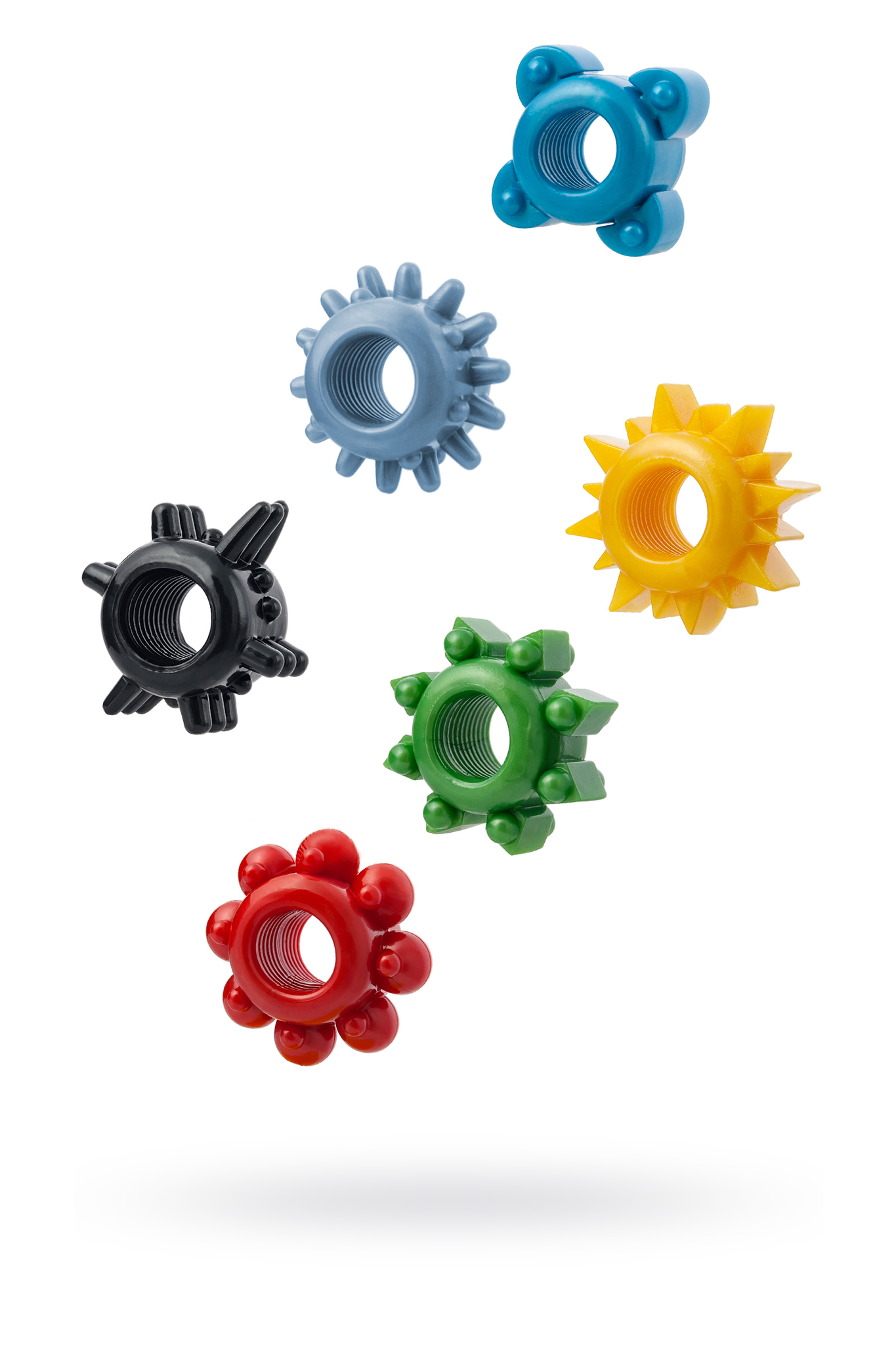 Каждое кольцо изготовлено из качественного пластика, что обеспечивает долговечность и безопасность. Упаковка содержит 6 колец различных цветов: черный, синий, зеленый, желтый, красный и голубой. Не забудьте о специальном очищающем спрею Clear Toy 100 мл для ухода за изделиями после использования.