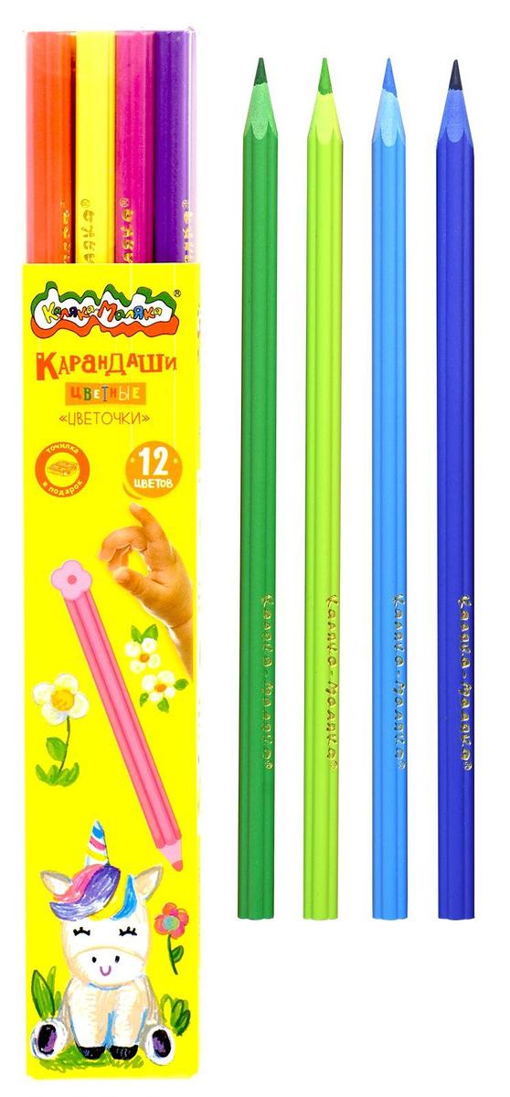 Набор цветных карандашей «Цветочки», 12 цветов, трехгранные, с точилкой и пластиковым тубусом