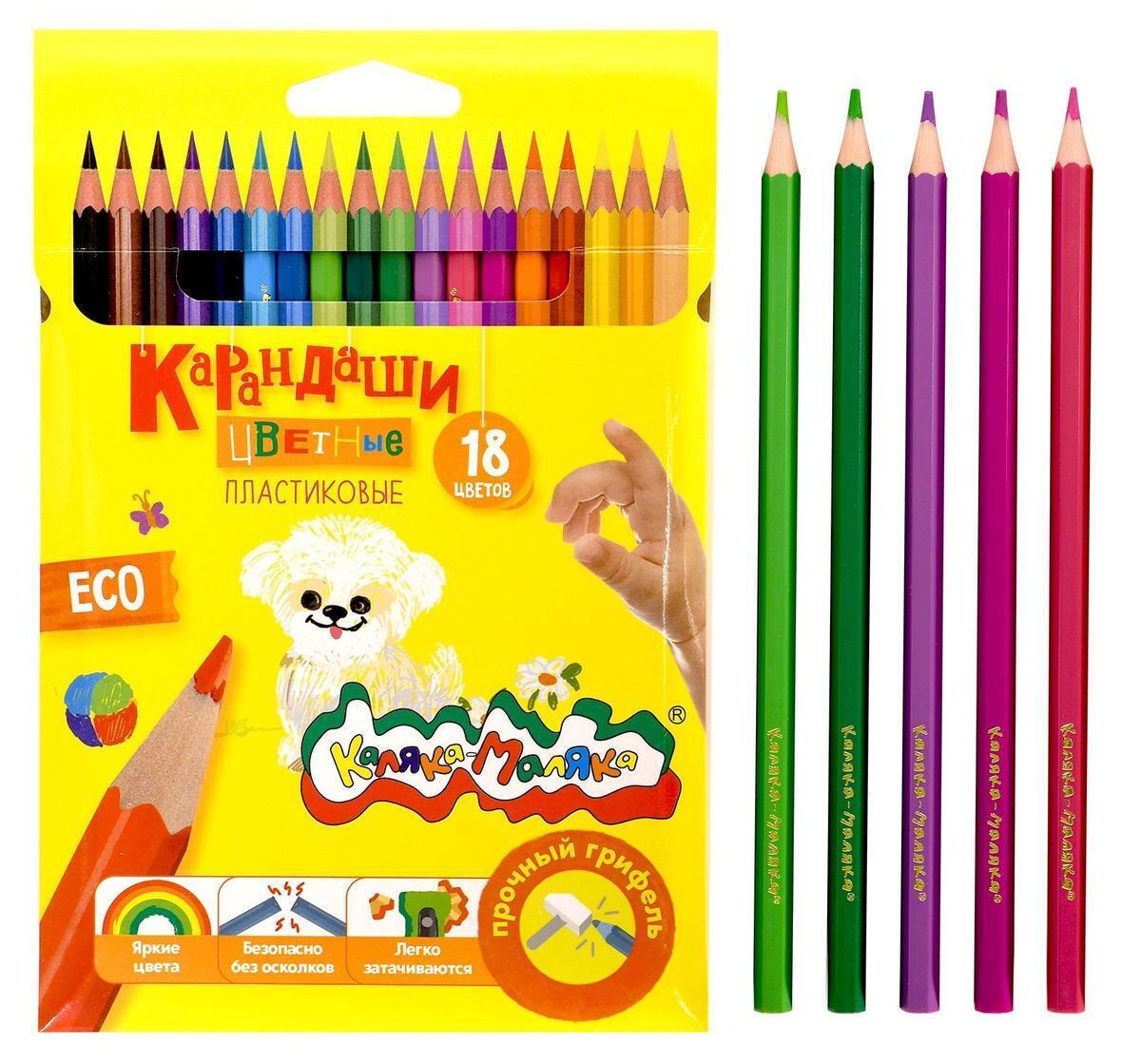 Набор цветных карандашей 'Каляка-Маляка' 18цв, шестигранные, пластик, яркие и безопасные