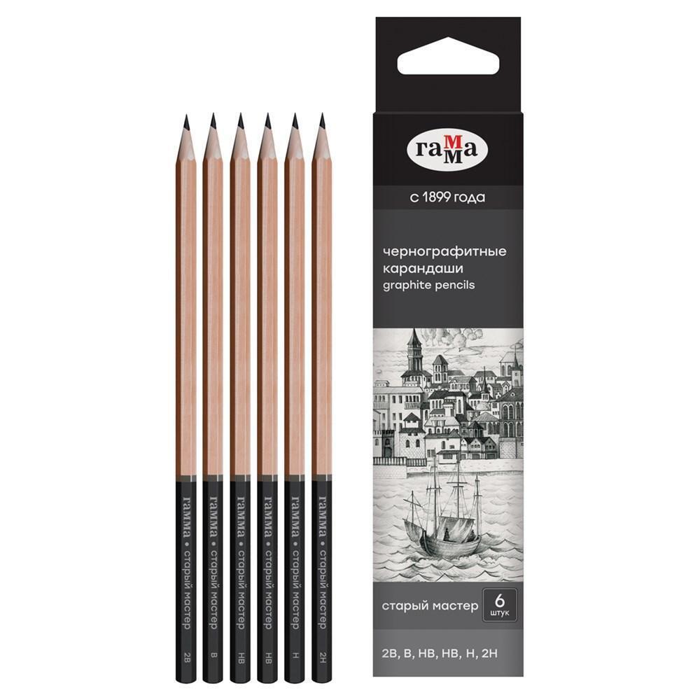 Создайте идеальные эскизы с набором карандашей 'Старый мастер'. Шесть разных степеней твердости (от 2B до 2H) позволяют реализовать любые художественные замыслы.