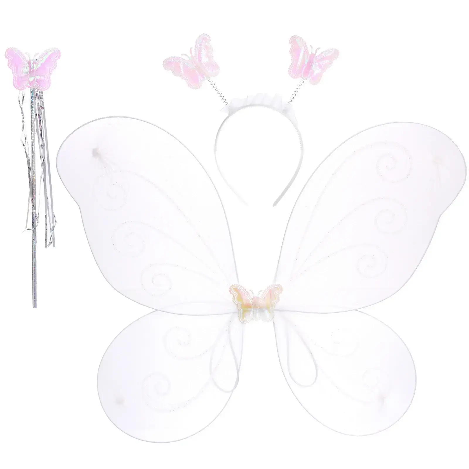 Этот карнавальный набор — идеальный выбор для создания незабываемого образа на детских праздниках и тематических мероприятиях. Он включает в себя ободок с двумя очаровательными бабочками, прозрачные крылья и волшебную палочку, что позволит вашему ребенку почувствовать себя настоящей принцессой или феей. Набор выполнен в нежных белых и розовых тонах, что добавляет ему игривости и очарования.