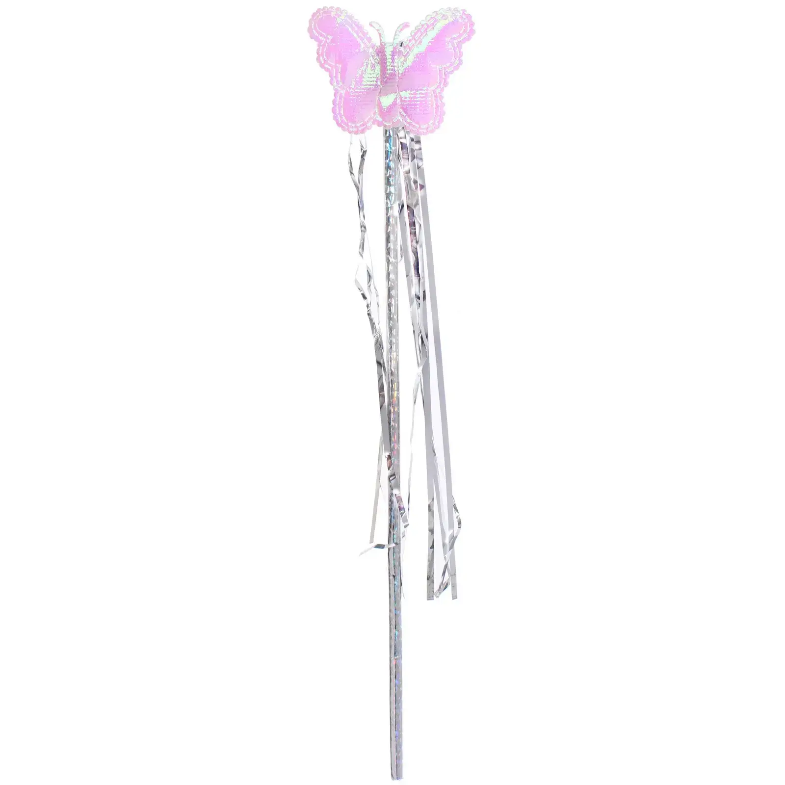 Обратите внимание, что размеры элементов не указаны, но они подходят для детей разного возраста. Крылья имеют округлую форму и легкий блеск, что делает их особенно привлекательными. Ободок украшен рюшами и бабочками, а палочка дополнена длинными блестящими лентами, создающими эффект волшебства. Этот набор станет отличным подарком для маленьких мечтательниц!