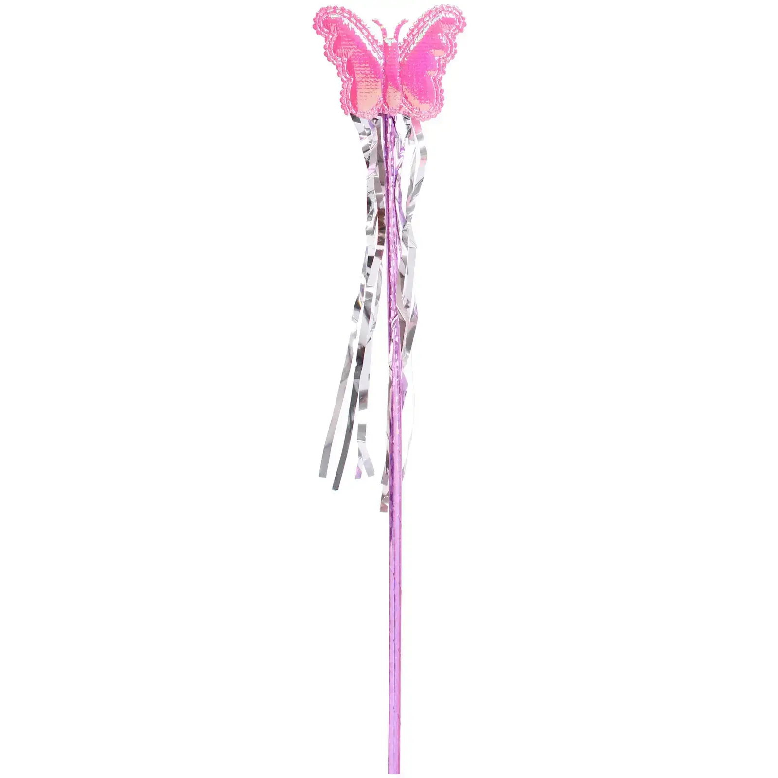 Крылья имеют полупрозрачную текстуру и украшены узорами, что создает эффект волшебства. Ободок с бабочками надежно фиксируется на голове, а палочка с длинными лентами добавляет динамики в образ. Размеры элементов идеально подходят для детей, что делает их удобными для ношения. Этот набор станет отличным подарком для дня рождения или другого праздника.