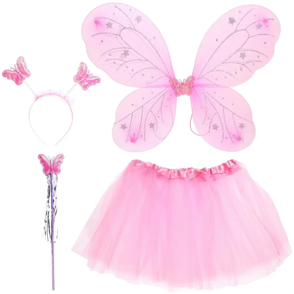 Этот карнавальный набор — идеальный выбор для создания незабываемого образа феи или бабочки на детских праздниках. Яркие и легкие элементы костюма подарят вашему ребенку комфорт и радость во время игр и утренников. Набор включает ободок, волшебную палочку, юбку и крылья, выполненные в нежных розовых тонах, что делает его идеальным для девочек.