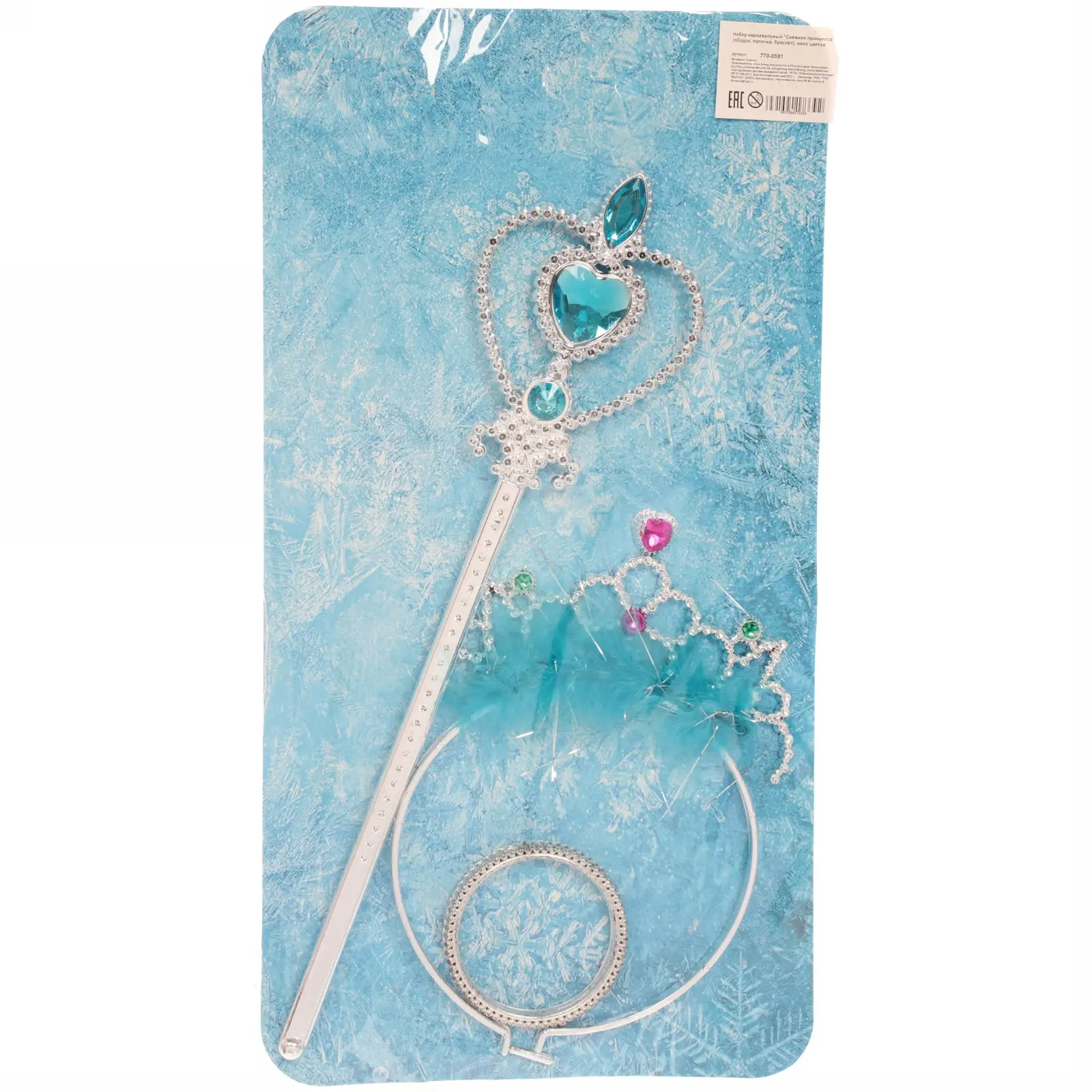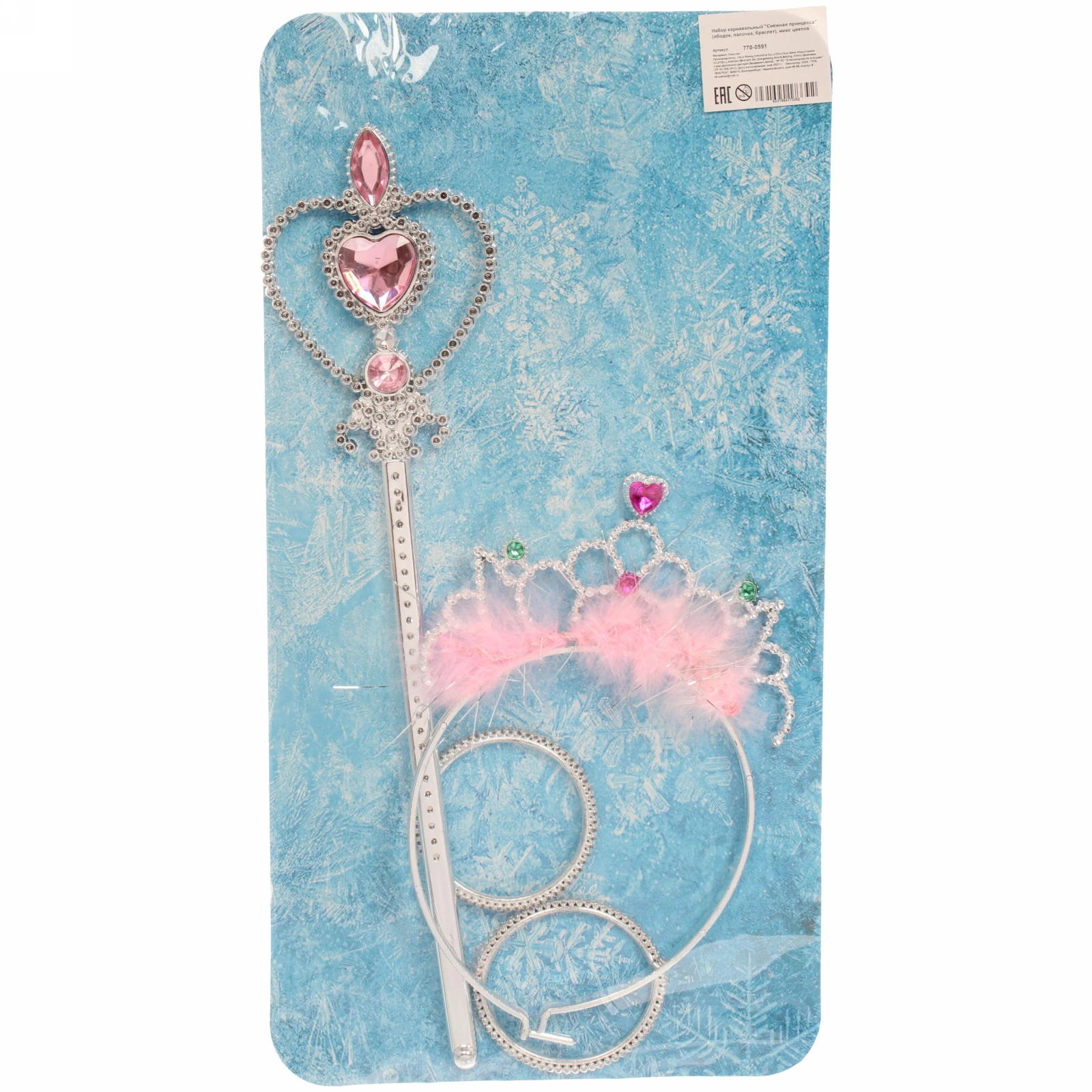 Набор карнавальный «Снежная принцесса»: ободок, палочка, браслет, пластик, разноцветный принт