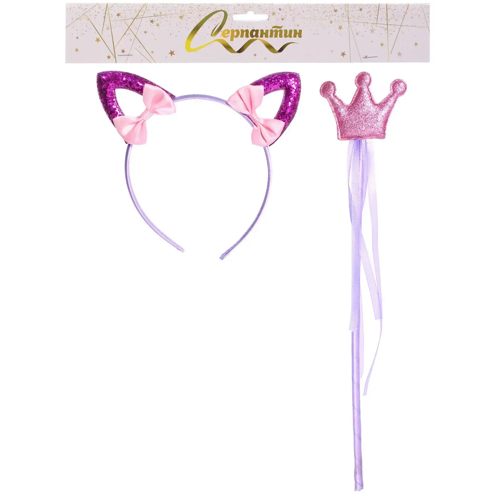 Этот карнавальный набор включает в себя ободок с ушками и волшебную палочку, которые идеально подойдут для детских праздников и тематических мероприятий. Яркие цвета и блестящие детали сделают ваш образ незабываемым и добавят веселья в любое торжество.