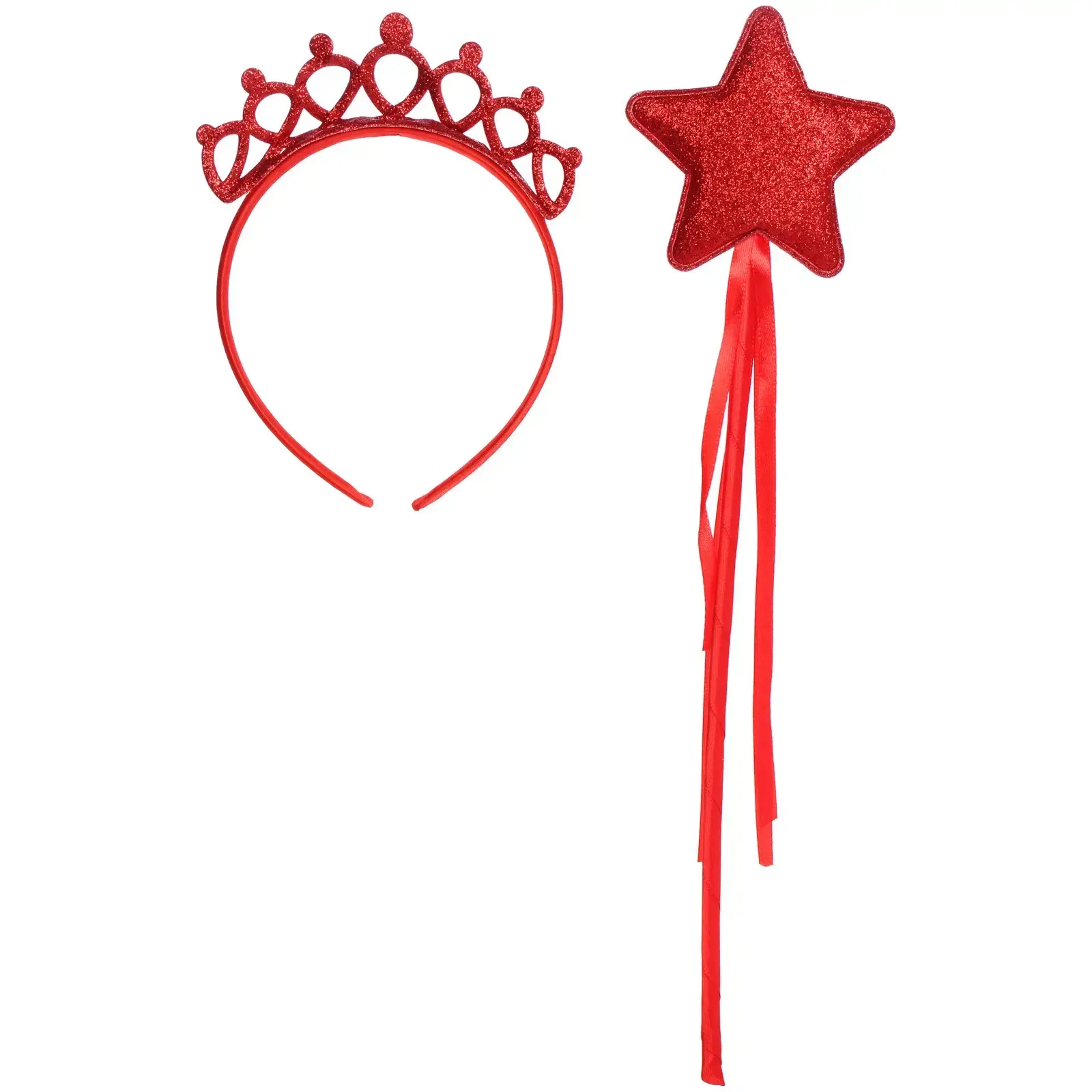 Ободок и палочка выполнены из качественных материалов, что гарантирует их безопасность и долговечность. Яркий красный цвет и блестящая текстура делают эти аксессуары привлекательными для детей. Размеры не указаны, но они подходят для большинства детей, благодаря гибкому дизайну ободка.