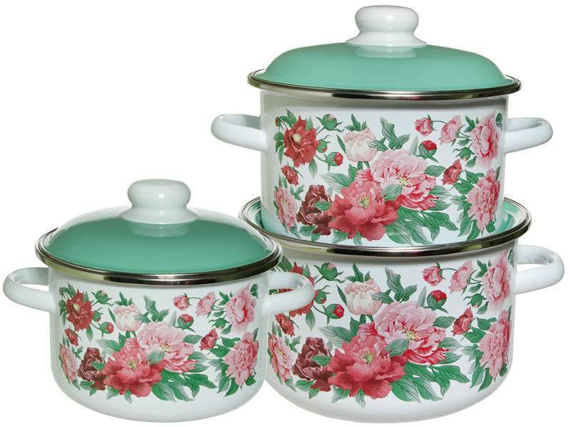 Произведено в России на предприятии «Стальэмаль» с соблюдением ГОСТ. Набор подходит для ежедневного использования в семьях из 3-5 человек. Идеальный выбор для приготовления первых и вторых блюд, кипячения воды и длительного хранения продуктов.