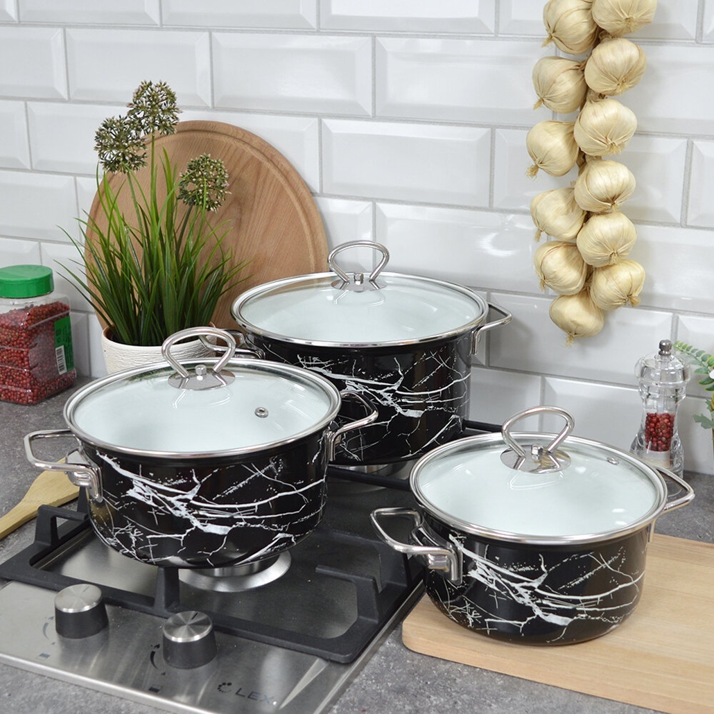 Набор кастрюль 'Черный мрамор-1-Элит', 3 шт, сталь, эмаль, индукция