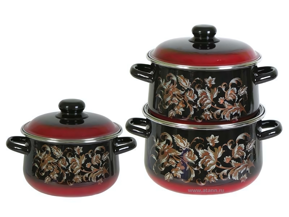 Состав набора: 3 предмета; Покрытие: Эмалированное