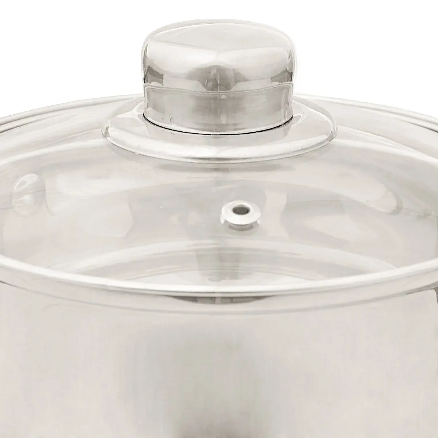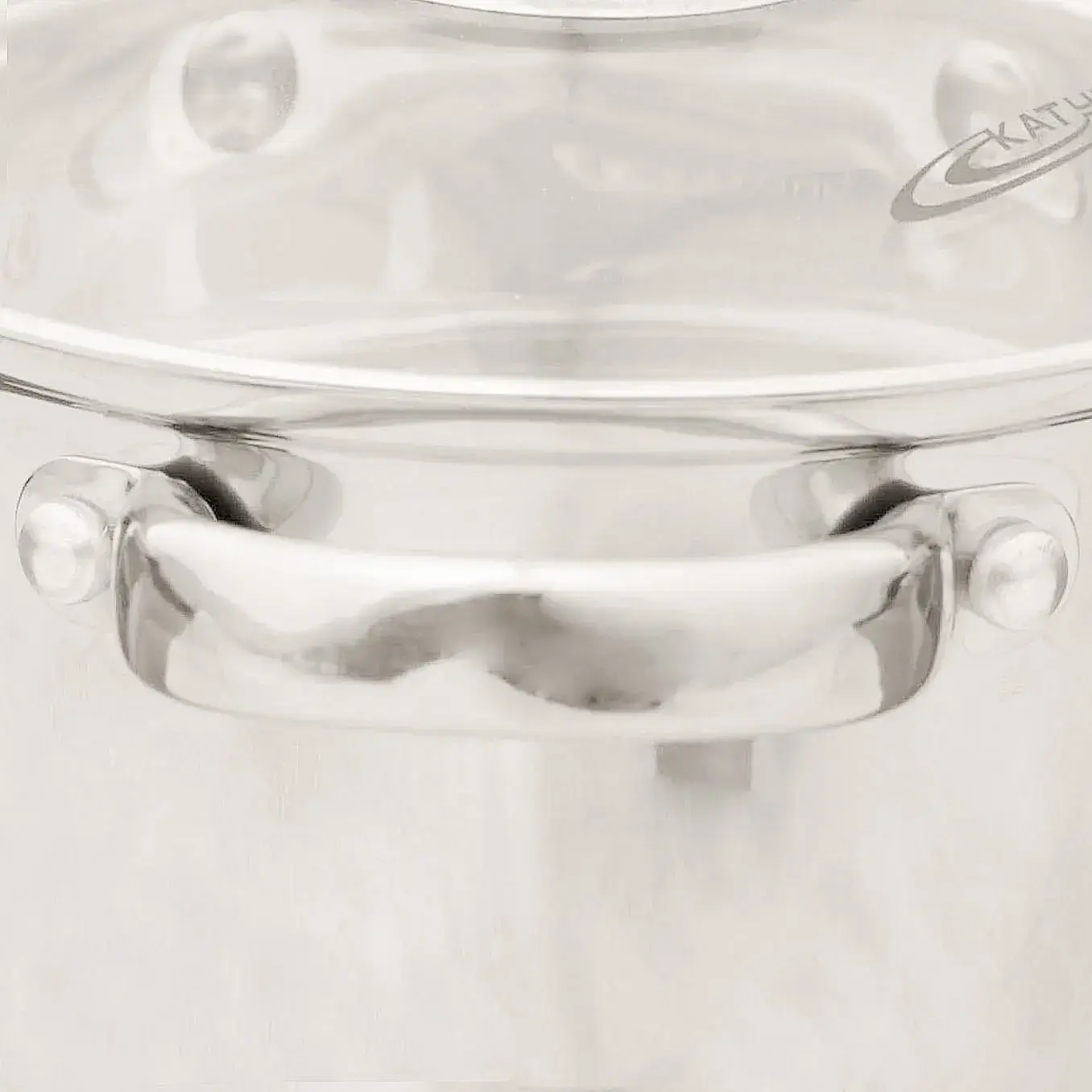 Кастрюли из пищевой нержавеющей стали устойчивы к деформации и подходят для всех типов плит. Гладкая поверхность без пор упрощает очистку, а продуманная форма позволяет компактно хранить посуду, ставя кастрюли друг в друга.