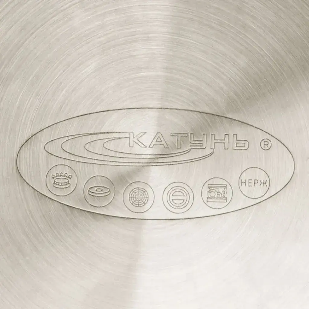 Сочетание зеркальной полировки и матовых элементов создаёт стильный внешний вид, а логотип «Катунь» на крышке подтверждает оригинальность продукции российского производителя.