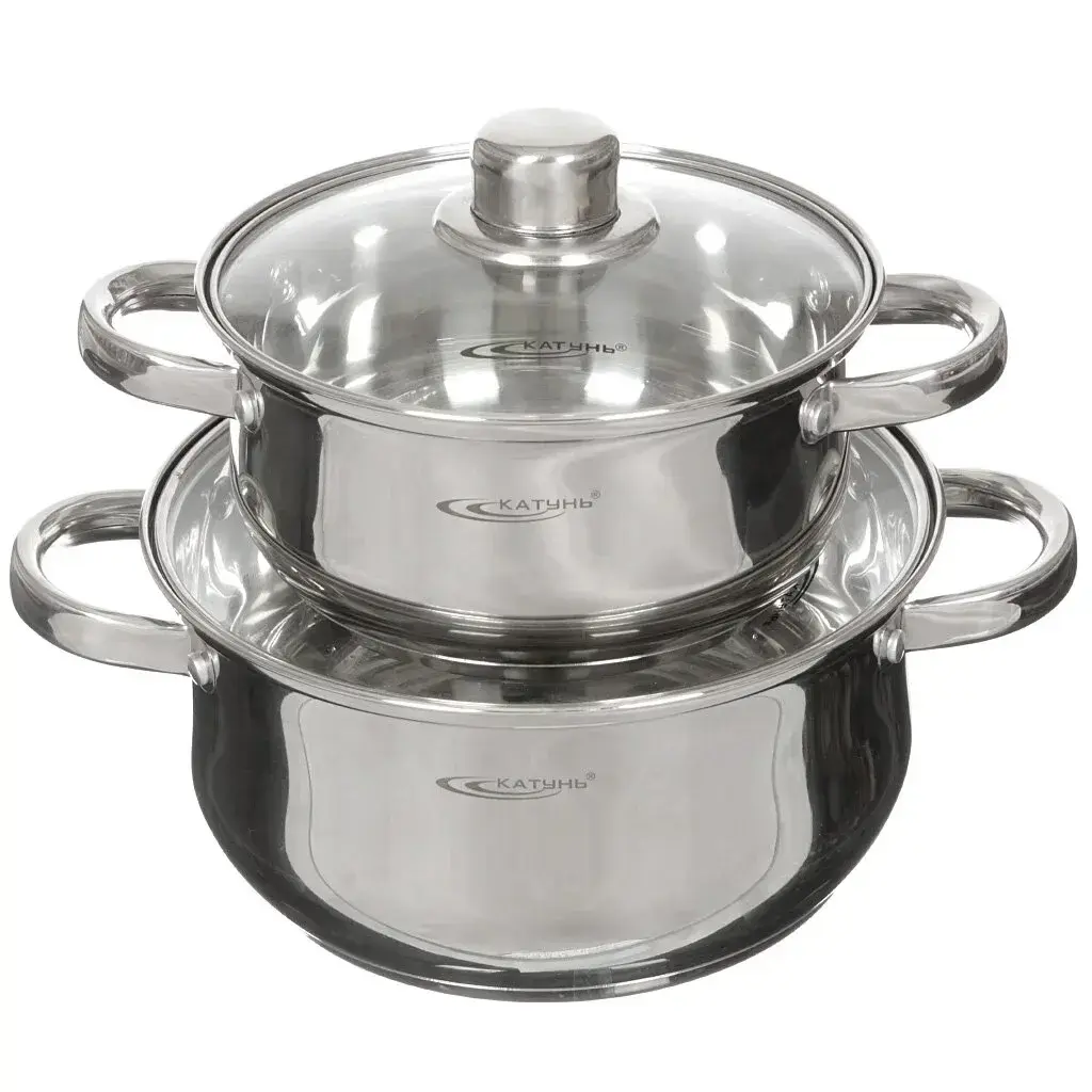 Набор кастрюль «Гретта» 4 предмета, нержавеющая сталь, стеклянные крышки, 2,2л+3,2л