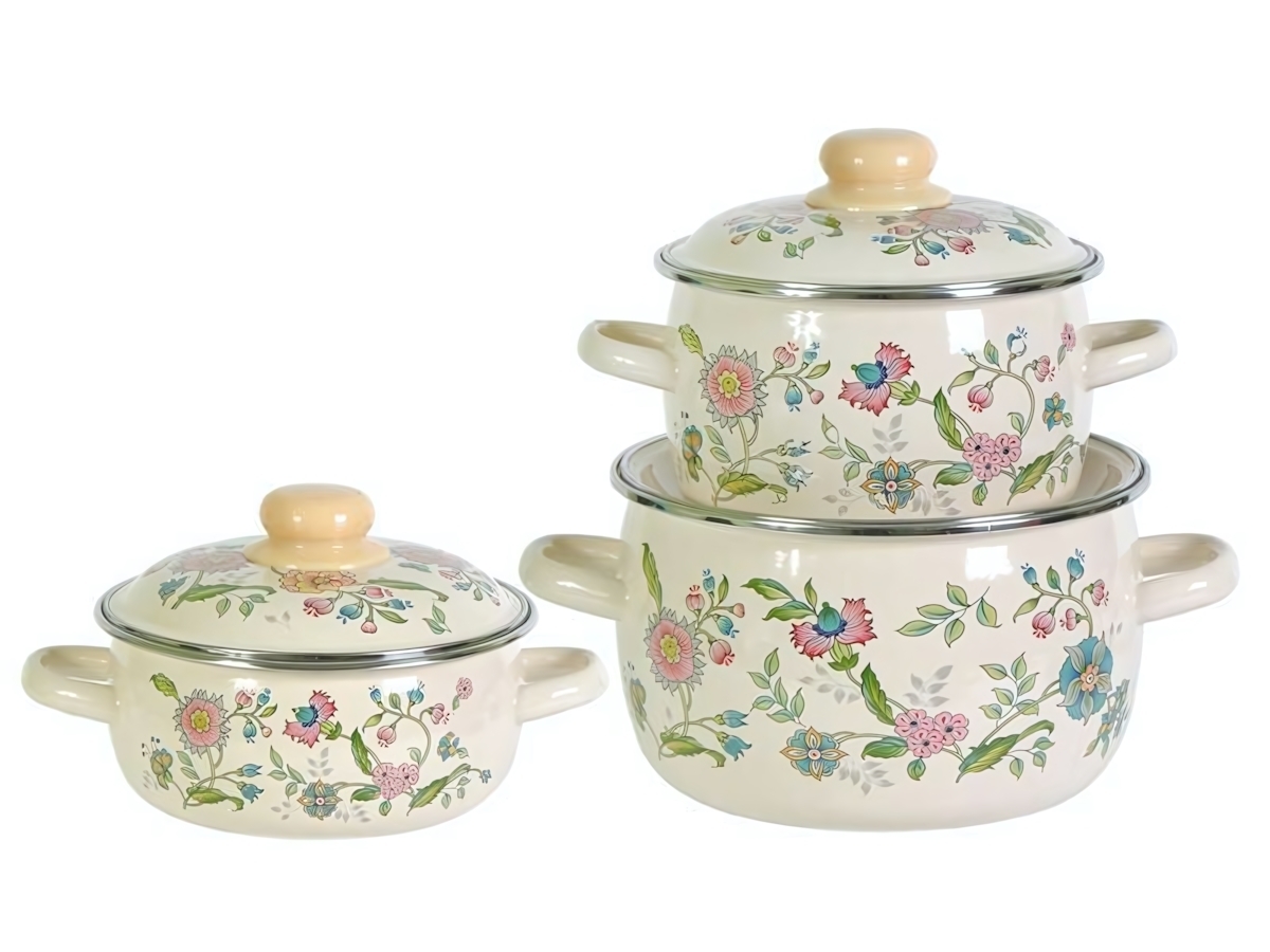 Набор кастрюль эмалированных «Луговые цветы» 3шт, 1.5л/2л/4л, сталь