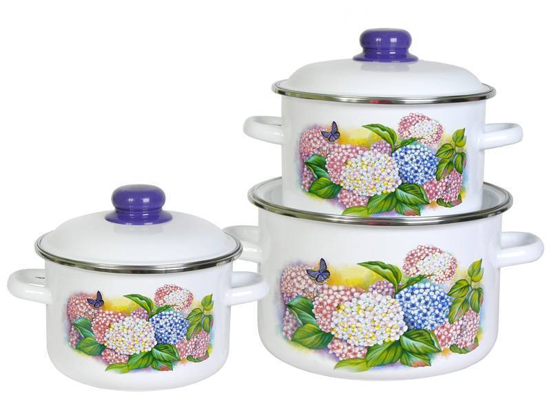 Эмалированные кастрюли серии «Сирень» сочетают практичность и эстетику — ваши блюда будут готовиться с удовольствием, а кухня заиграет новыми красками. Набор из трёх предметов разного объёма станет универсальным помощником для супов, гарниров и компотов.