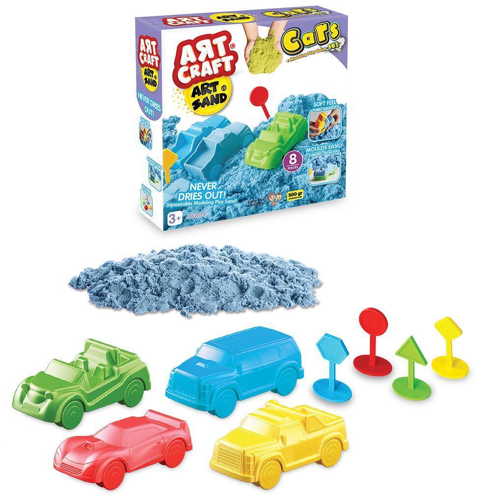Набор кинетический песок "ART & SAND", 500г, с машинками и формочками, для детей от 3 лет