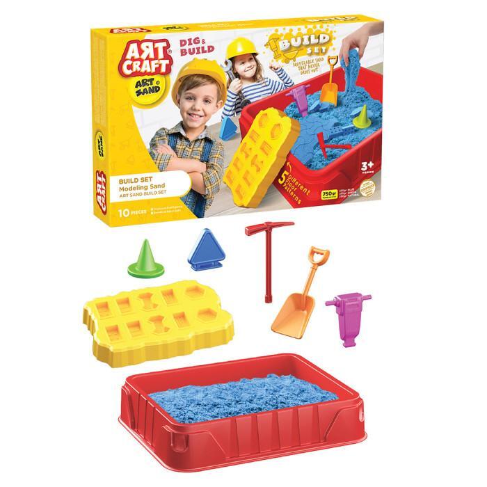 В набор входят 7 элементов: 750 г кинетического песка, песочница, формочки и инструменты. Дети могут использовать лопатки, тачку и формочки для создания уникальных фигурок и конструкций. Набор подходит для игры как дома, так и на улице, что делает его универсальным и практичным.