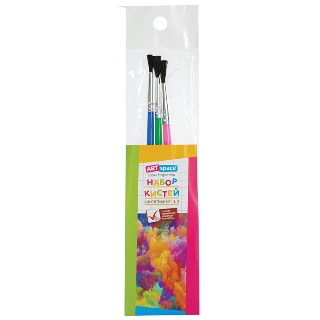 Набор кистей синтетических ArtSpace, 3 штуки, №1, №2, №3, для акварели и гуаши