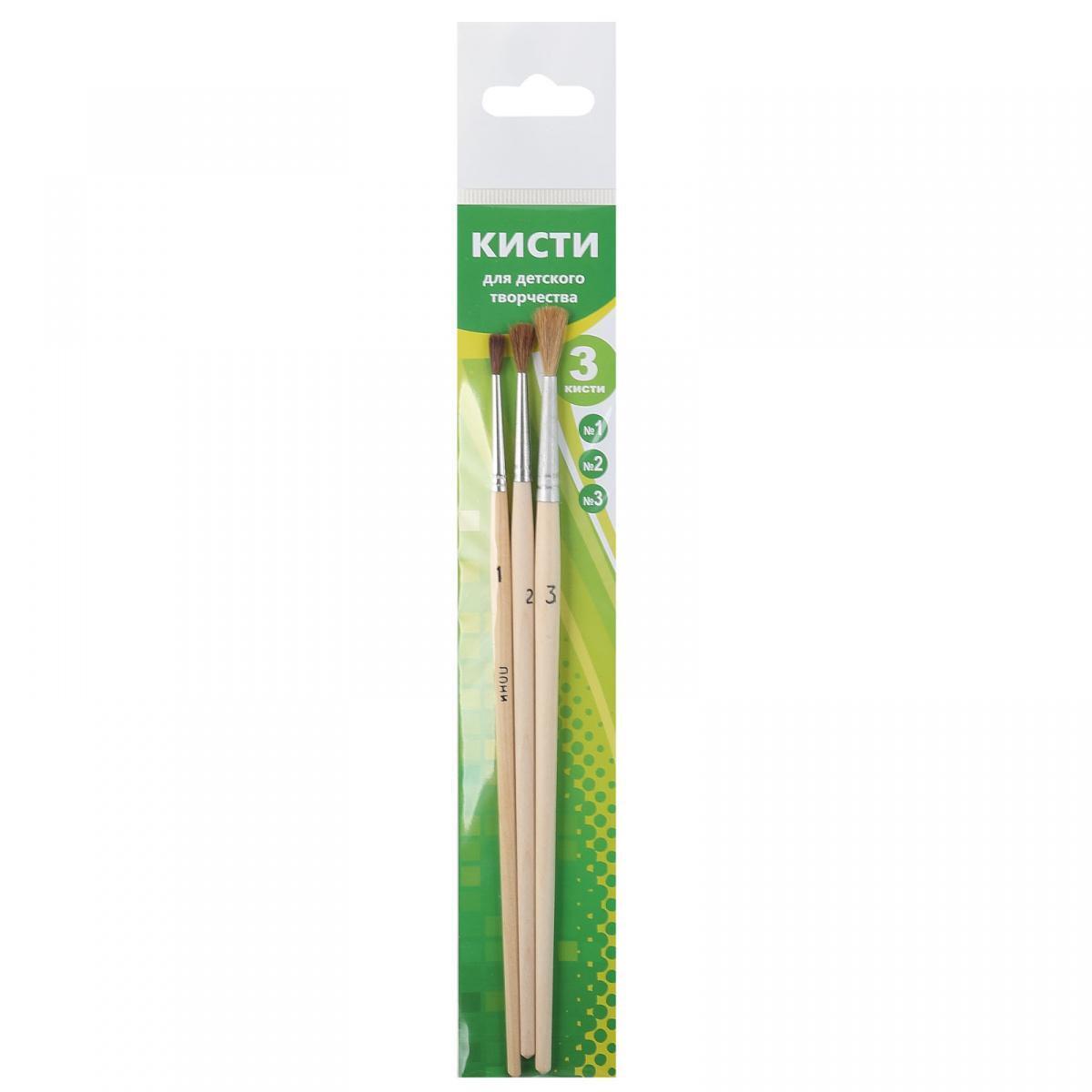 Набор кистей круглых "Пони-1" №1/2/3, искусственная щетина, деревянные ручки, детское творчество