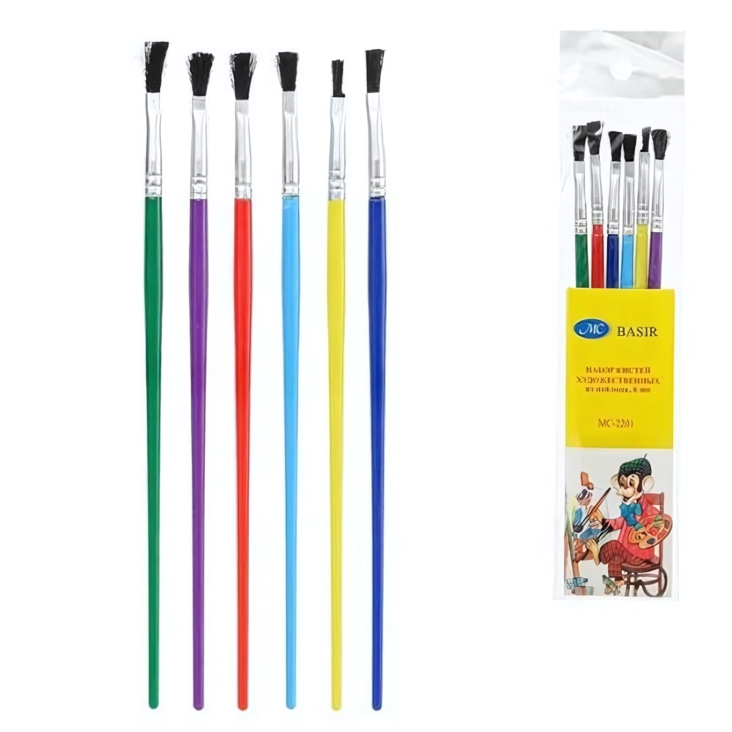 Набор художественных кистей basir из 6 штук — удобное решение для рисования, декоративных работ и творческих проектов. Разные размеры позволяют легко переходить от тонких линий к закрашиванию более крупных участков, делая процесс рисования аккуратным и контролируемым.