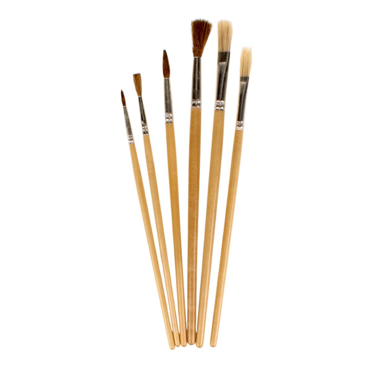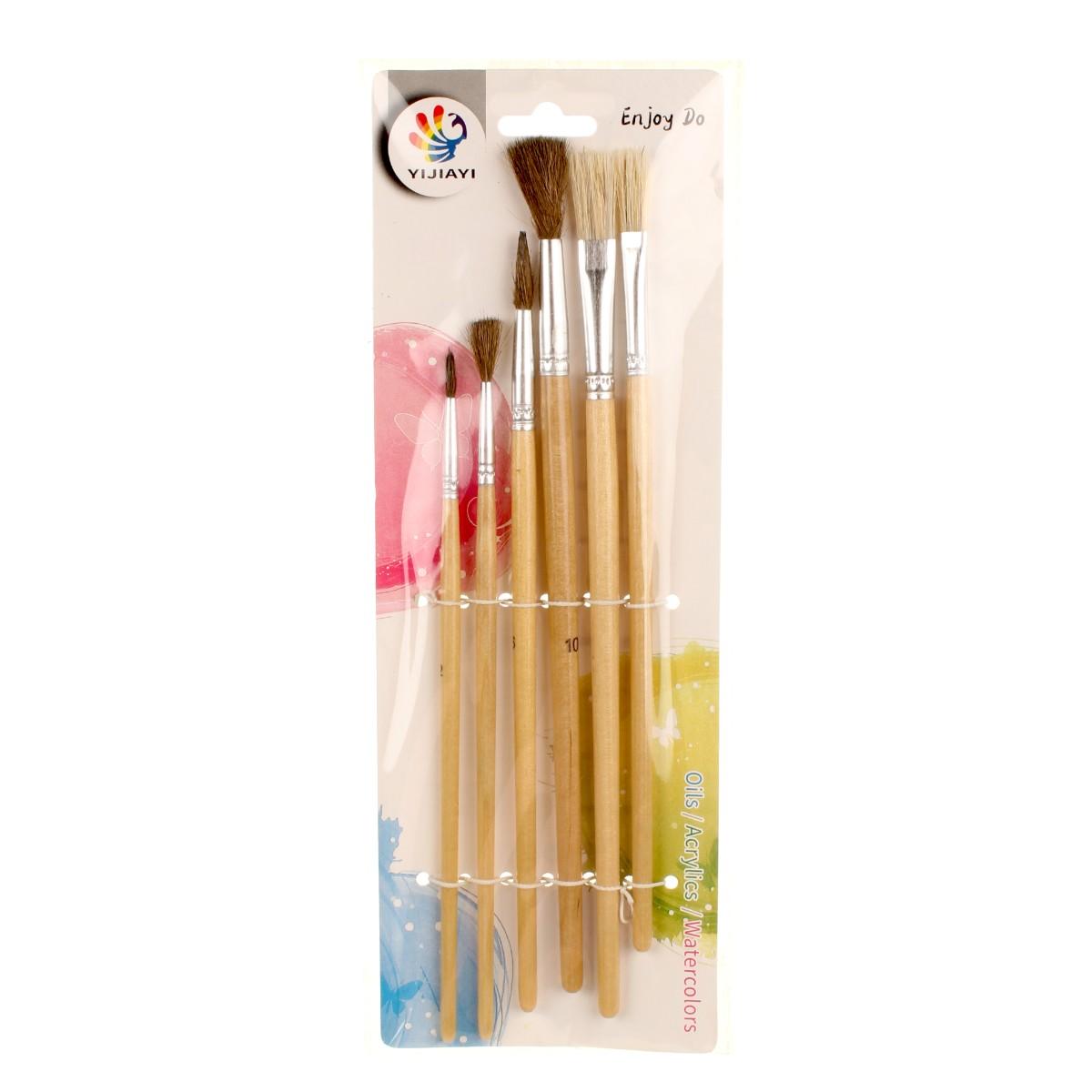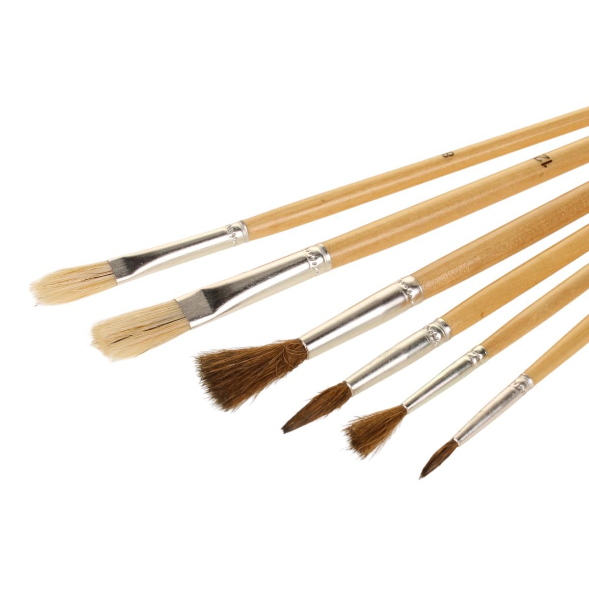 Набор кистей 6шт, пони и щетина, круглые/плоские, деревянные ручки