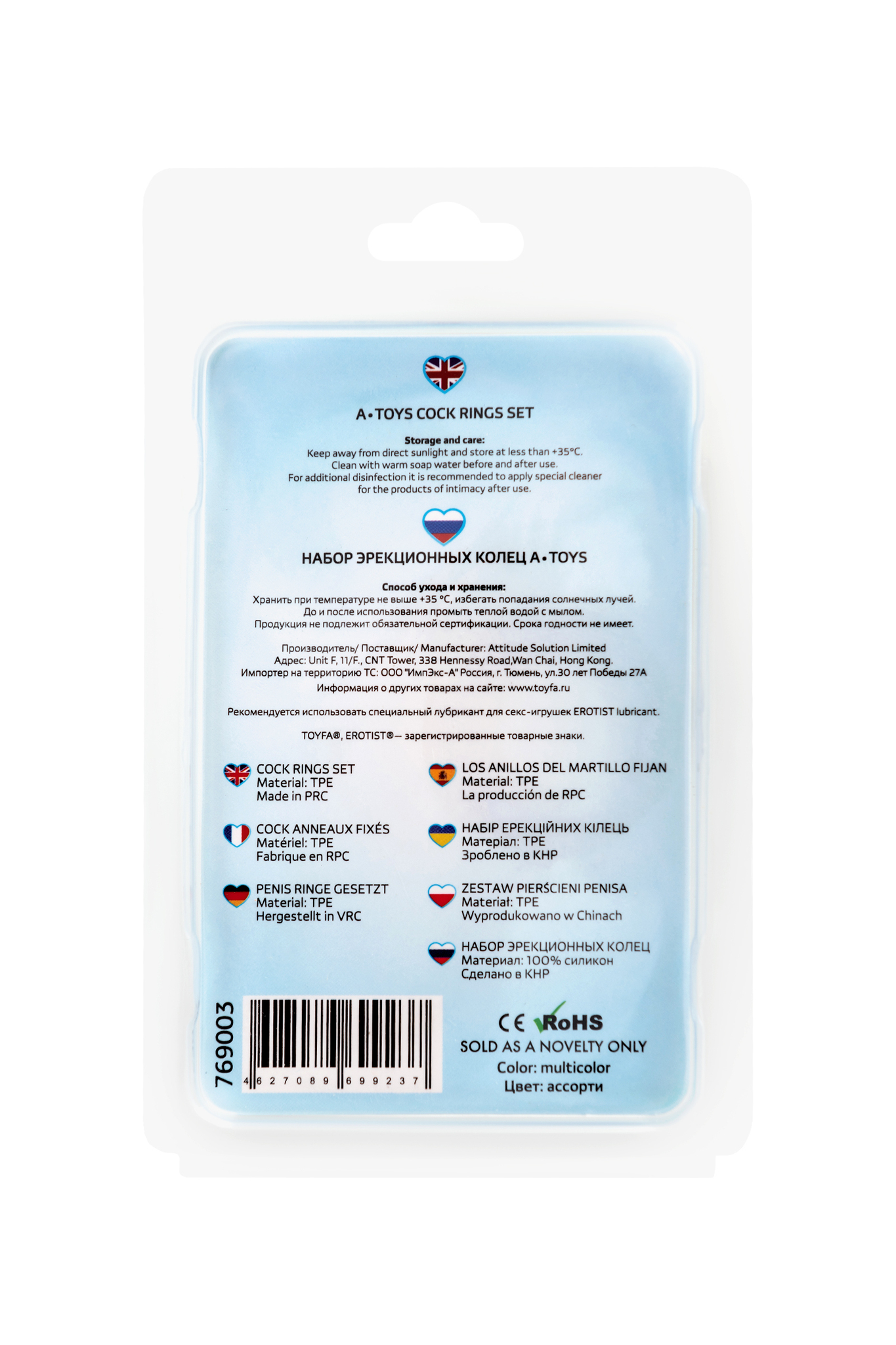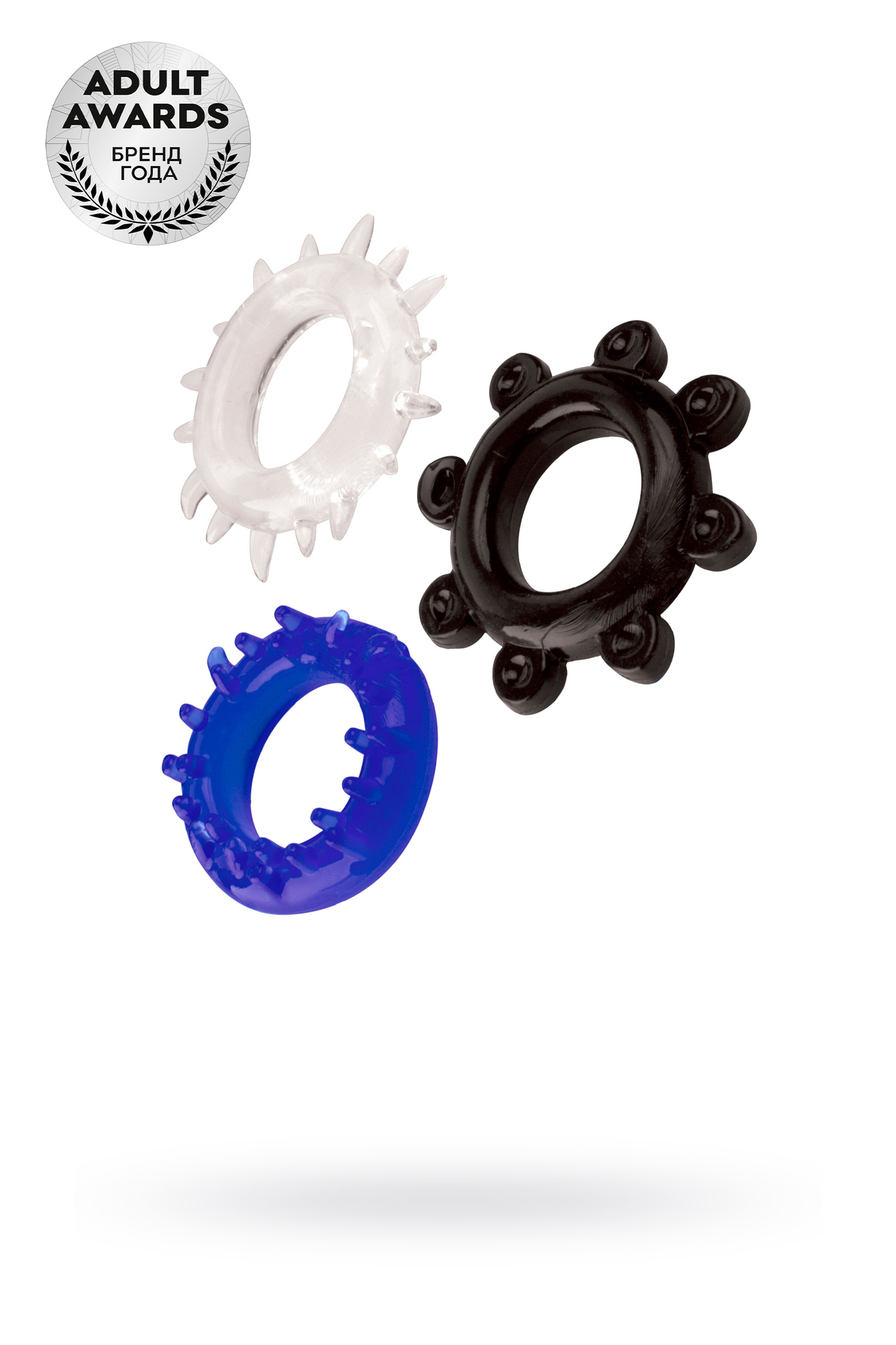 Эрекционное кольцо A-toys, набор 3 шт, TPE/силикон, разноцветные