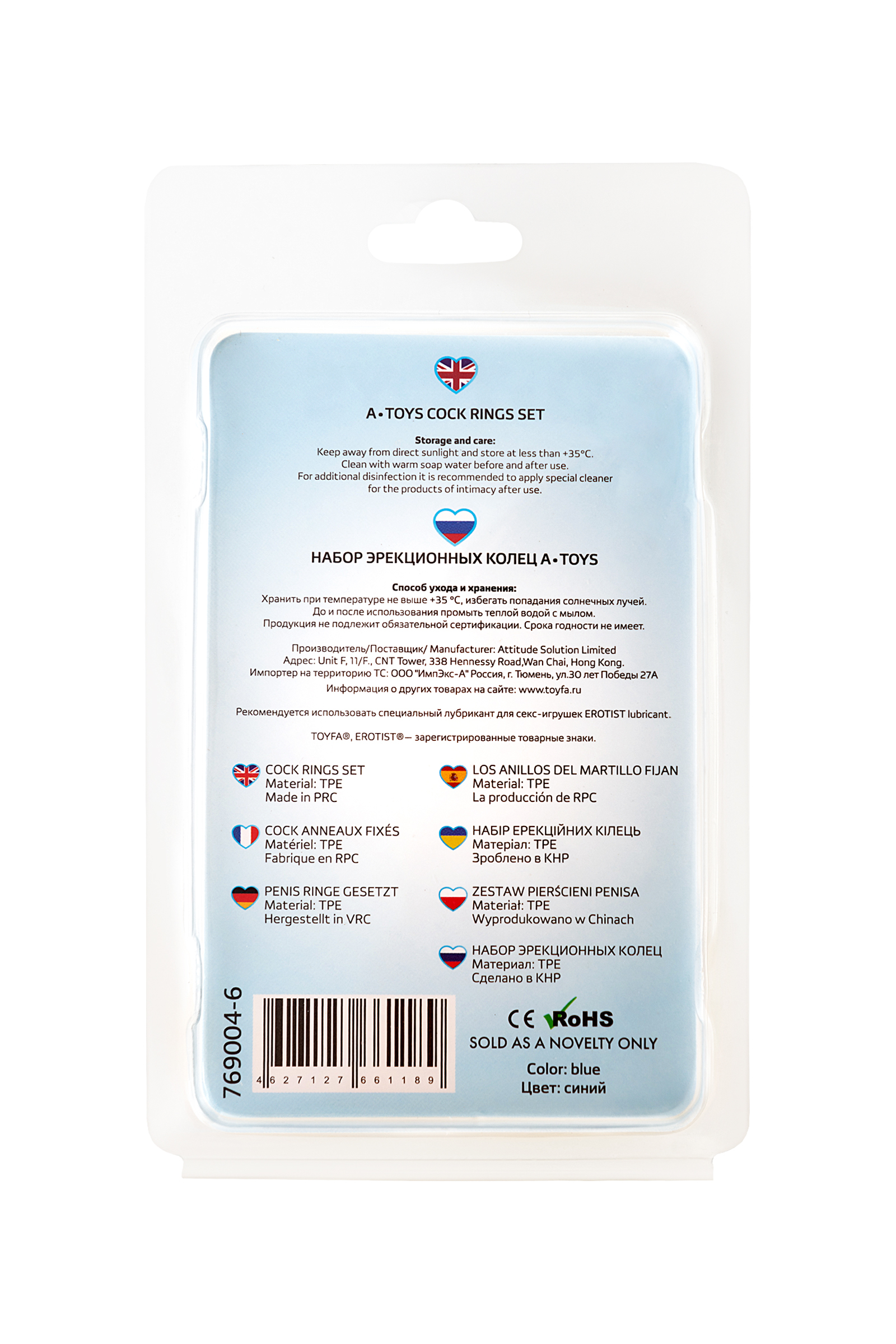 Эрекционные кольца "A-Toys" синие, 3 шт., силикон, усиление эрекции, водонепроницаемые