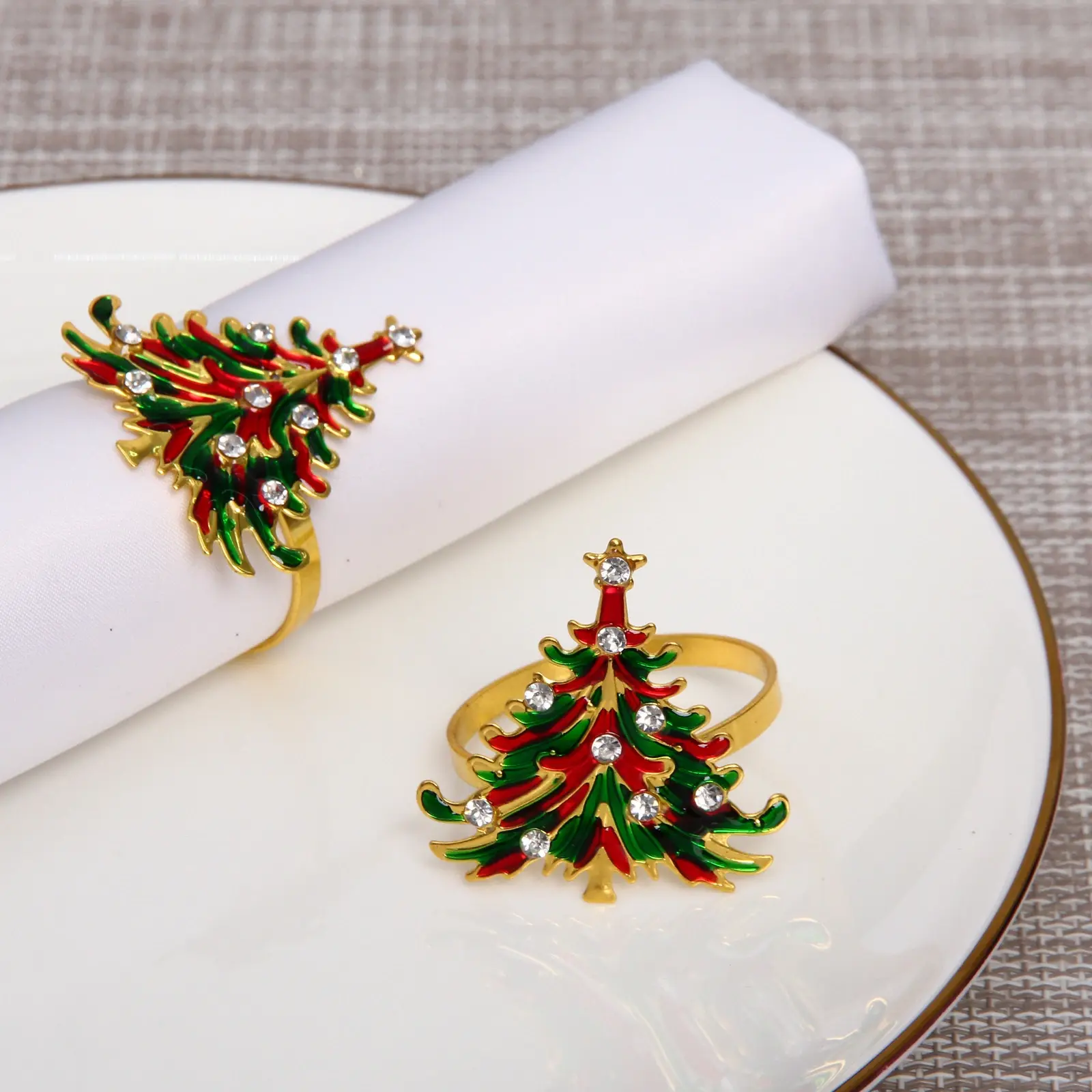 Кольца для салфеток «Ёлочка нарядная», 2 шт, металл золотистый/красно-зелёный