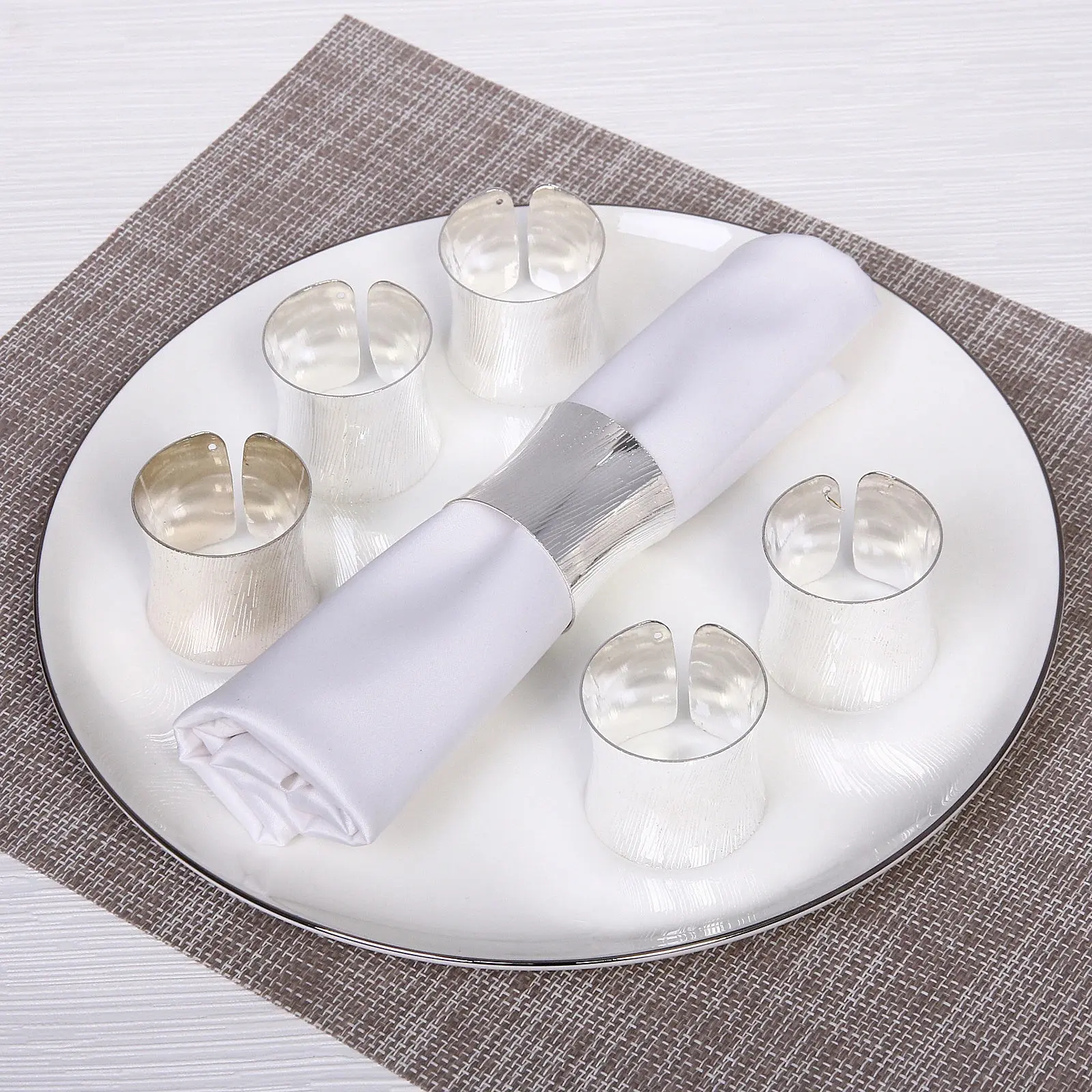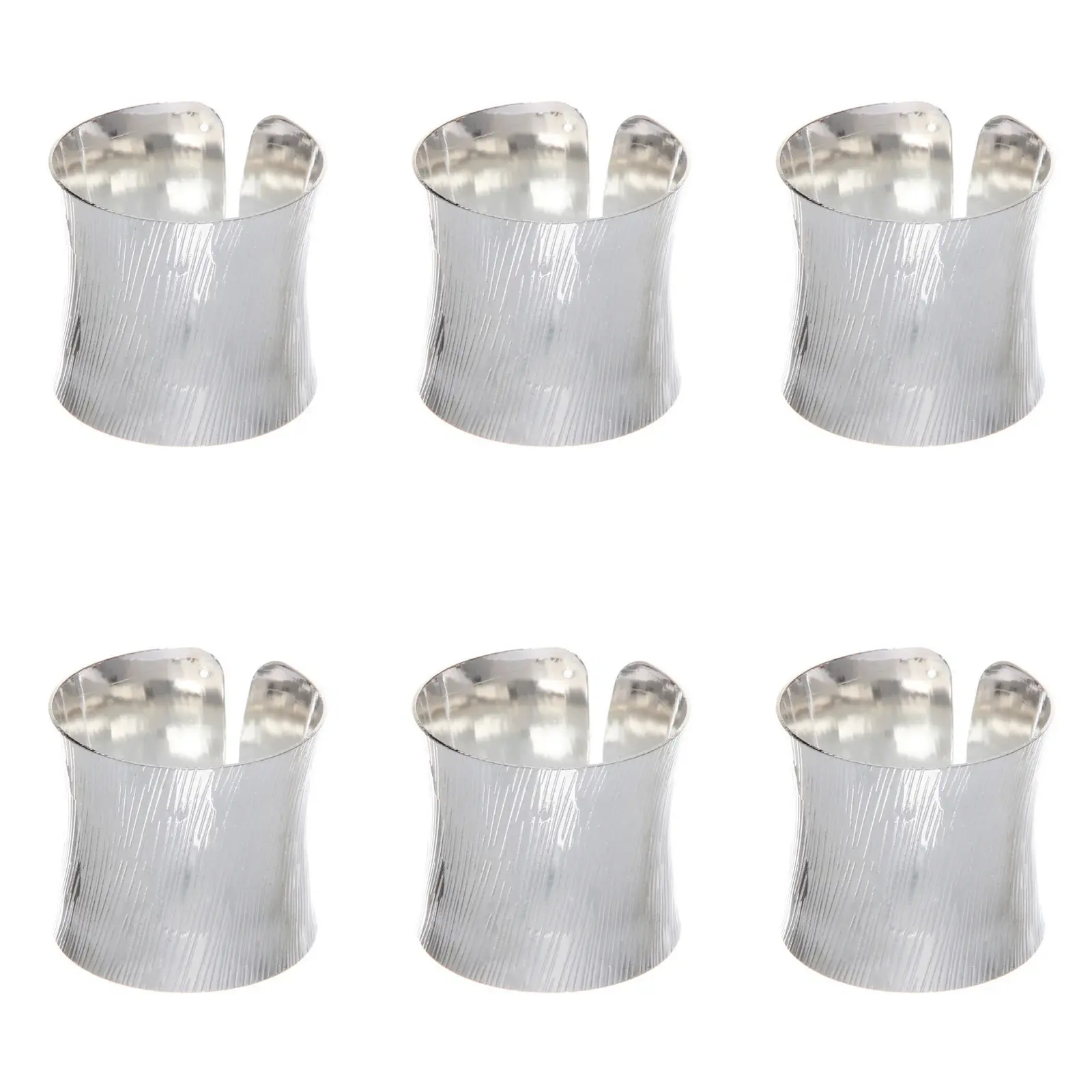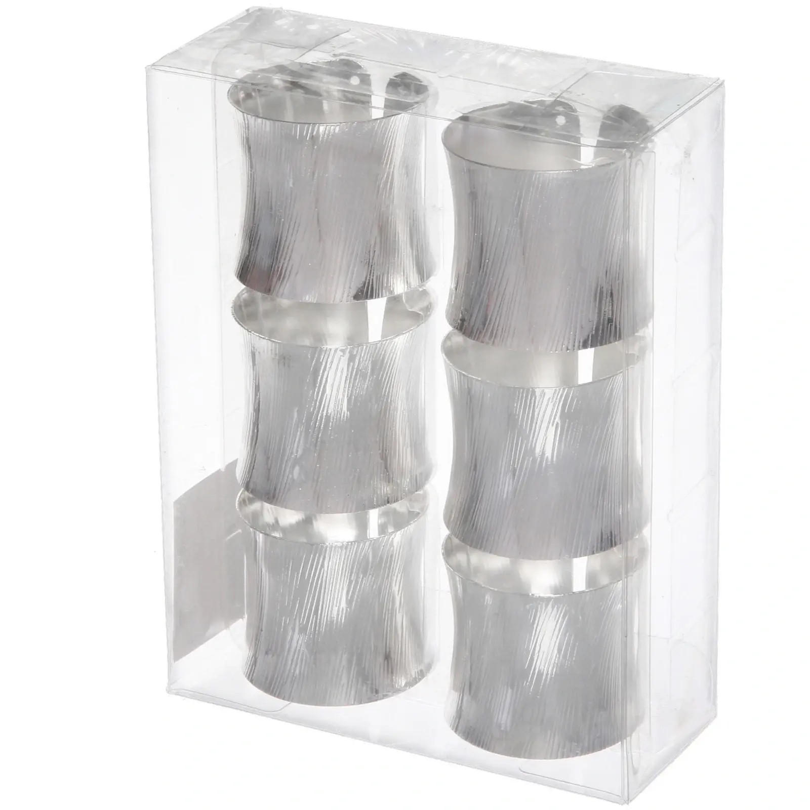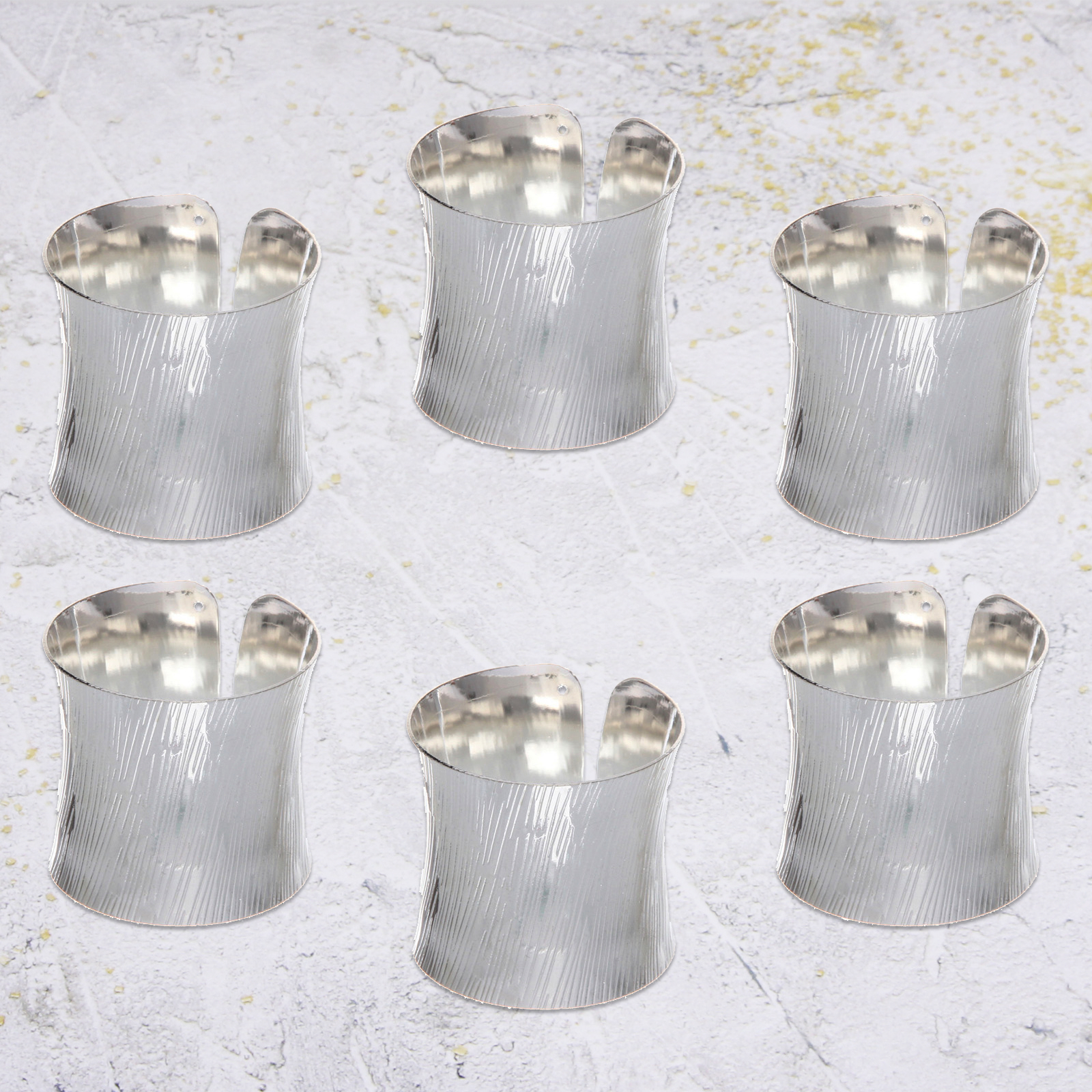 Каждое кольцо из набора выполнено из прочного металлического материала и имеет размер 4х4 см. Серебристый цвет с текстурированной поверхностью придаст вашему столу изысканность и элегантность.