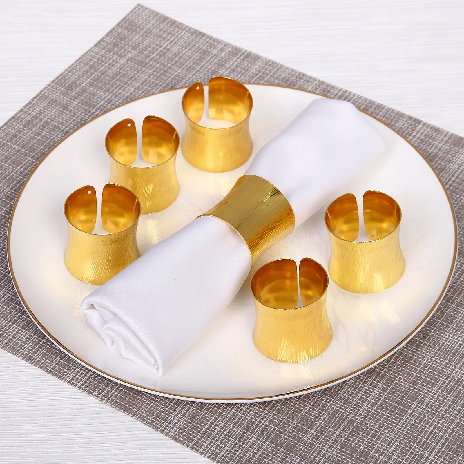 Добавьте ноту элегантности вашему праздничному или повседневному столу с набором колец 'Камея'. Золотистый блеск и текстурированная поверхность создают эффектную деталь сервировки, которая не останется незамеченной вашими гостями.