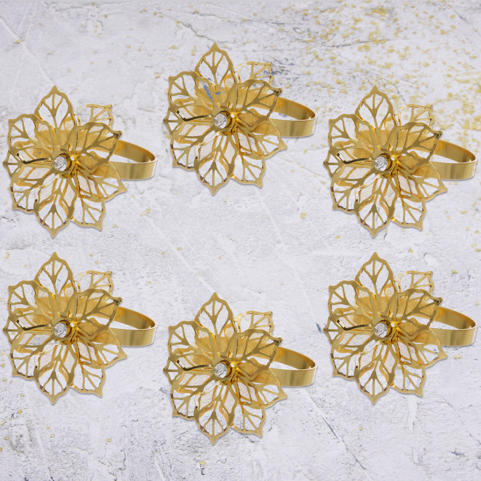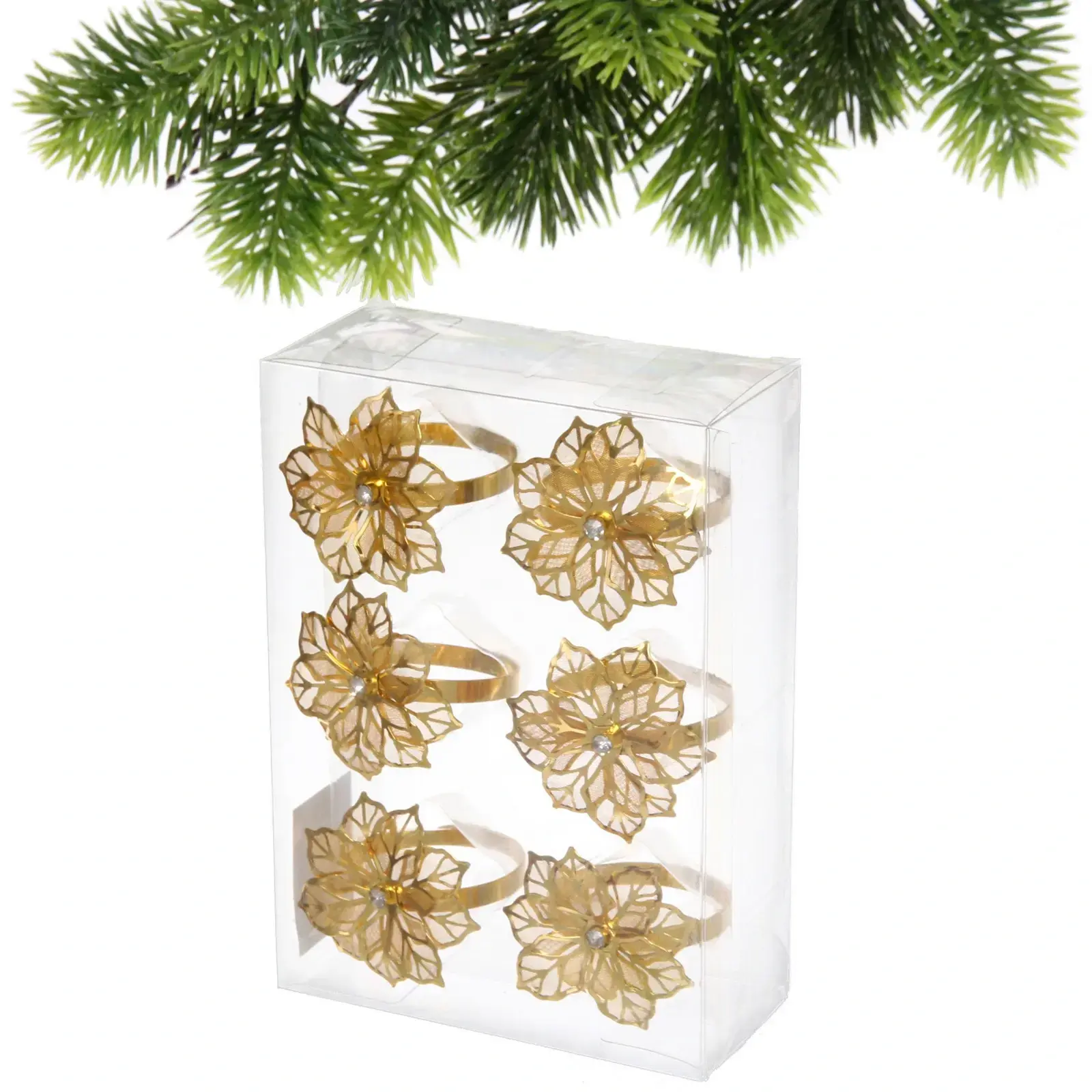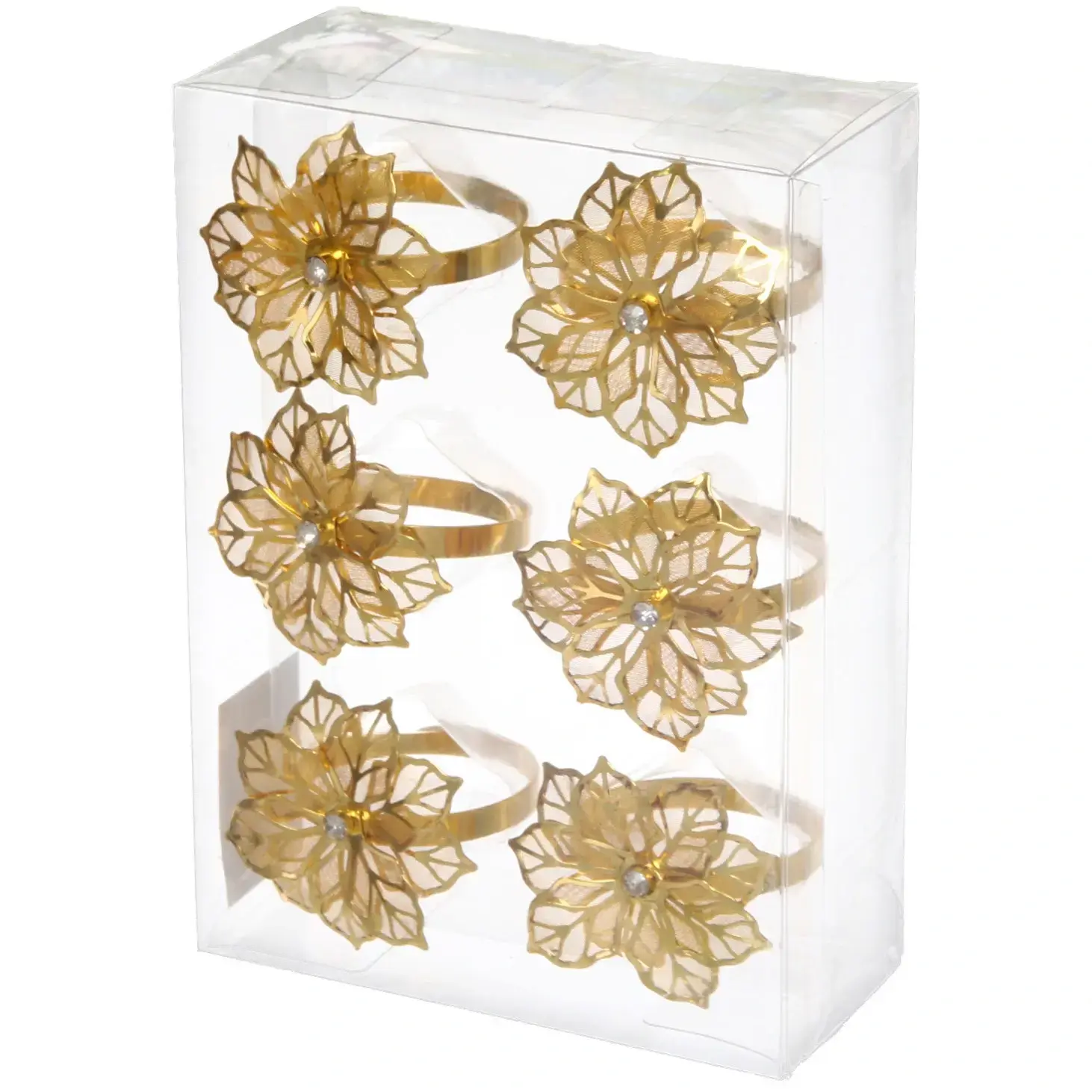 Создайте атмосферу праздника и уюта с набором колец для салфеток «Пуансеттия». Эти кольца, выполненные в золотистом цвете, добавят изысканности вашему столу и подчеркнут стиль сервировки. Каждый элемент набора оформлен в виде цветка, что делает его идеальным для праздничных мероприятий, таких как Новый год, свадьбы или семейные торжества.