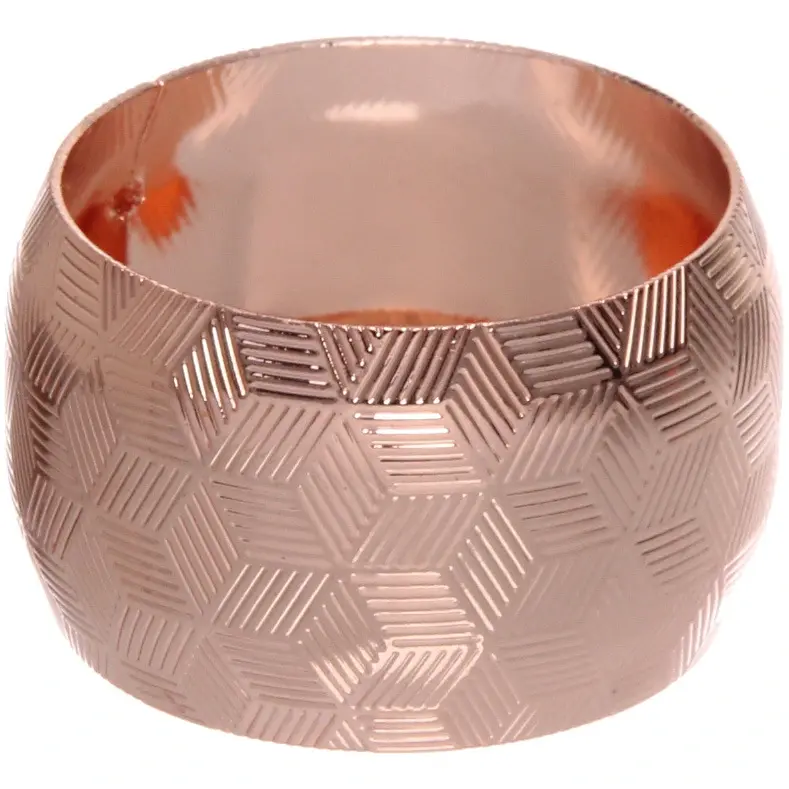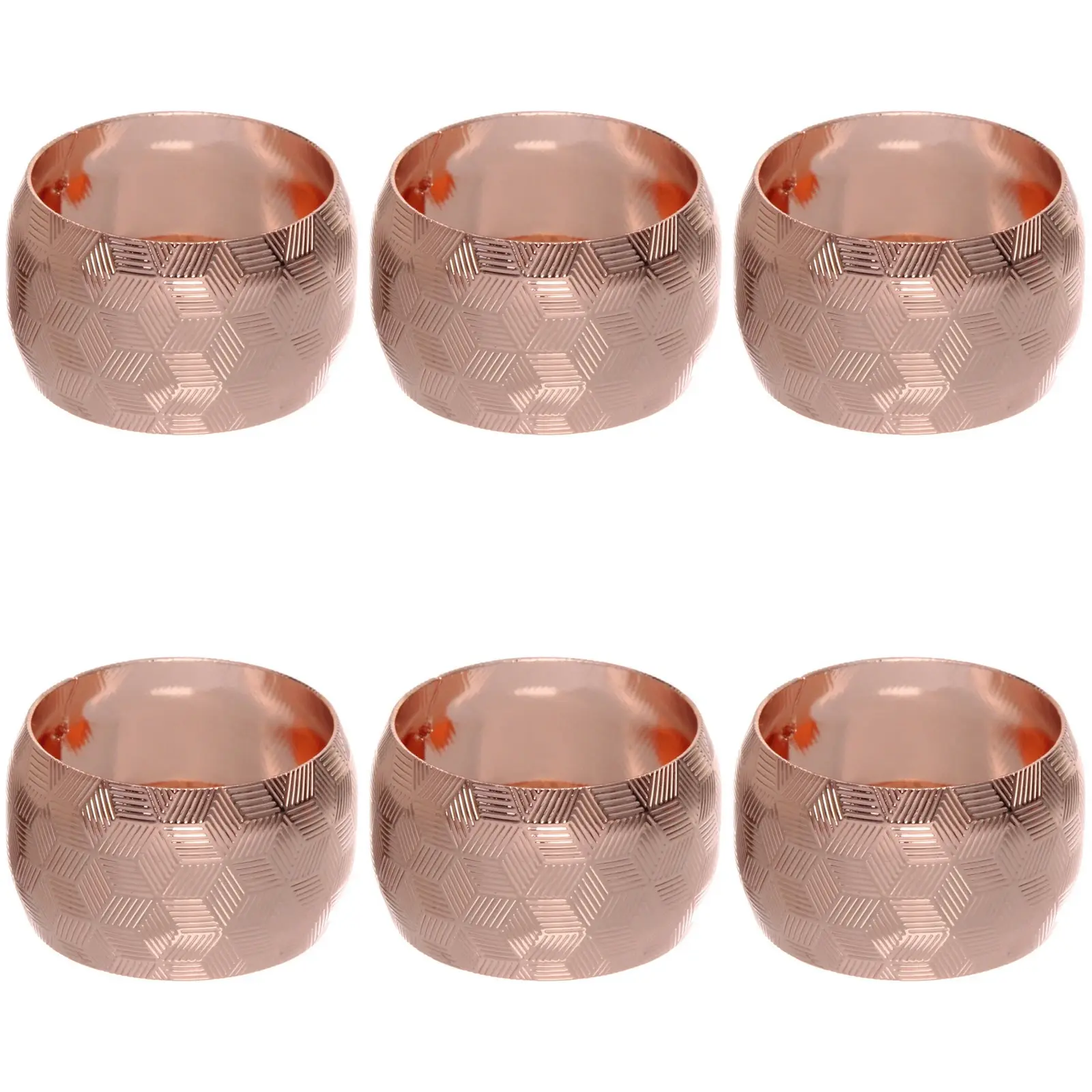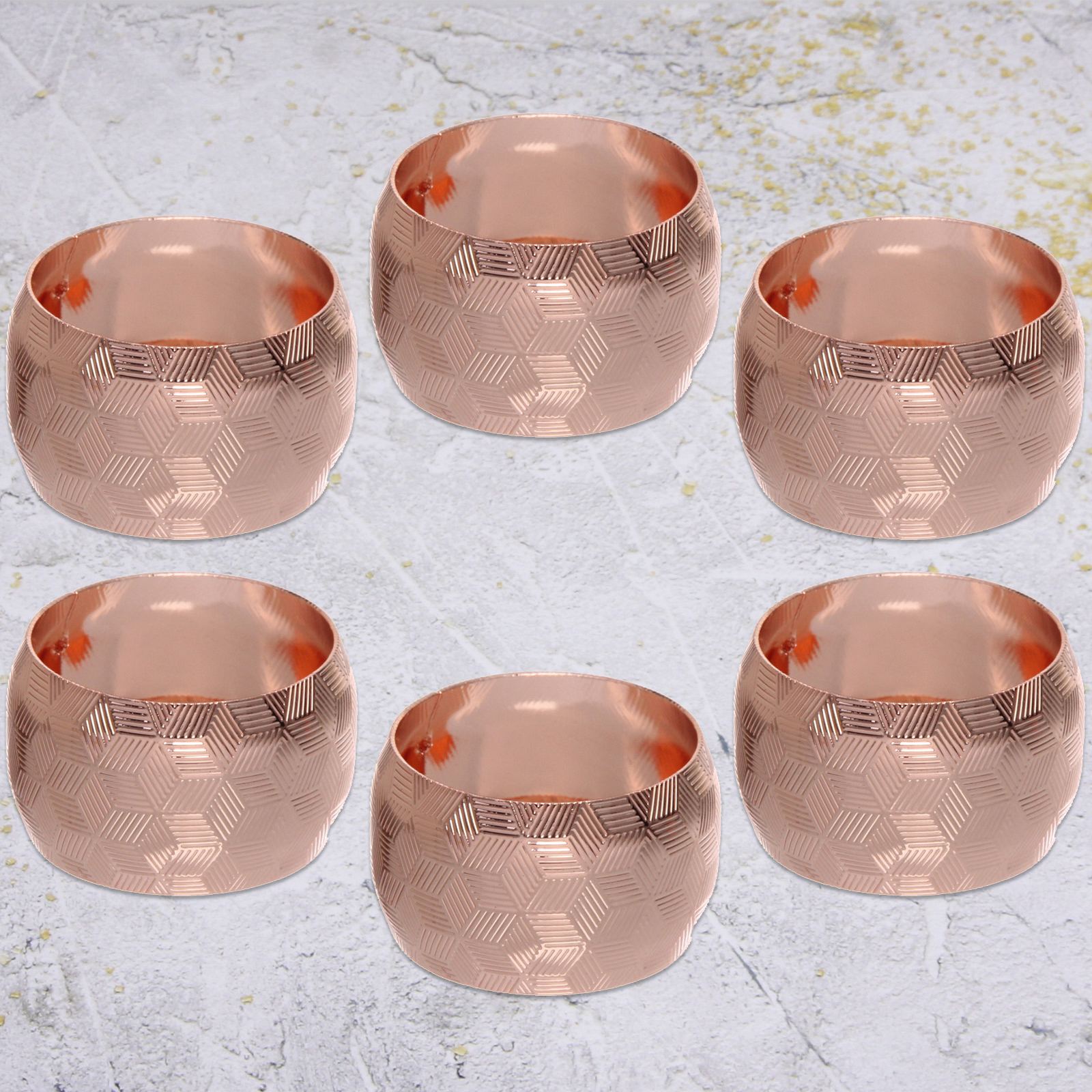 Набор из шести кольцевых держателей для салфеток «Витраж» превращает обычную сервировку в стильный ритуал. Розовое золото и геометрический узор в виде шестиугольников добавляют изысканность и лёгкость, подчёркивая каждый элемент вашего праздника.