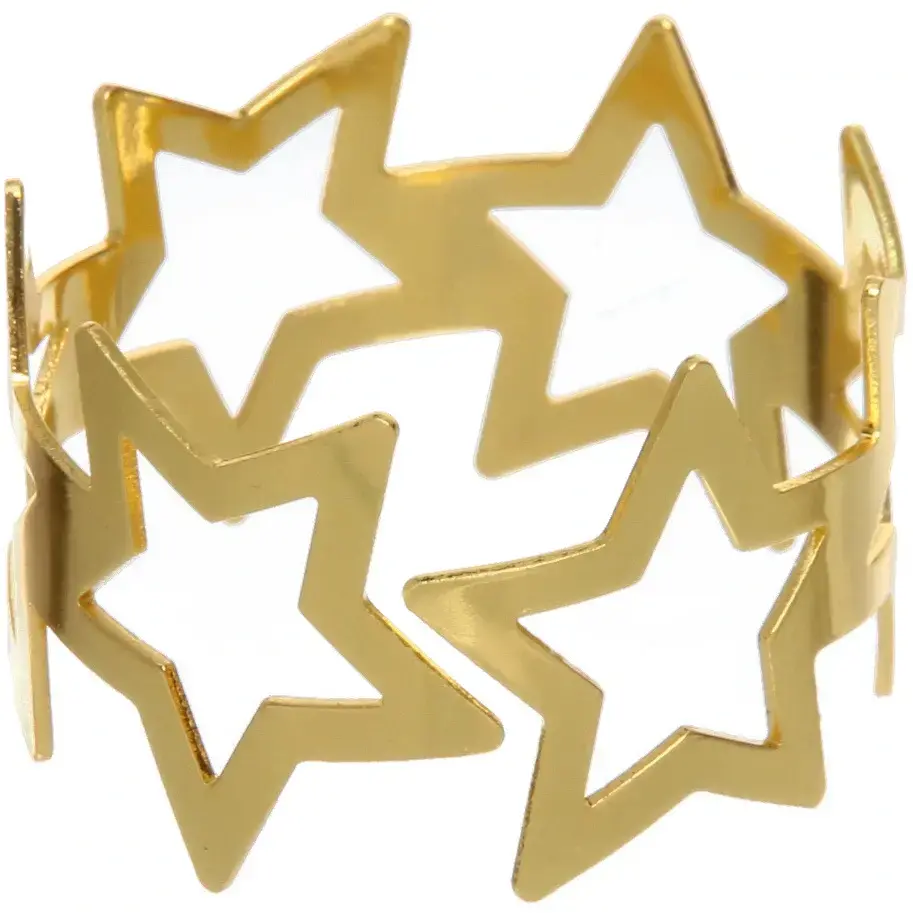 Выбирая набор колец для салфеток «Звезды», вы получаете не только красивый, но и практичный аксессуар. Золотистый цвет и блестящая поверхность придают изделиям элегантный вид, а их прочный материал гарантирует долговечность. Кольца легко чистятся и не теряют своего блеска со временем, что делает их идеальными для многократного использования.