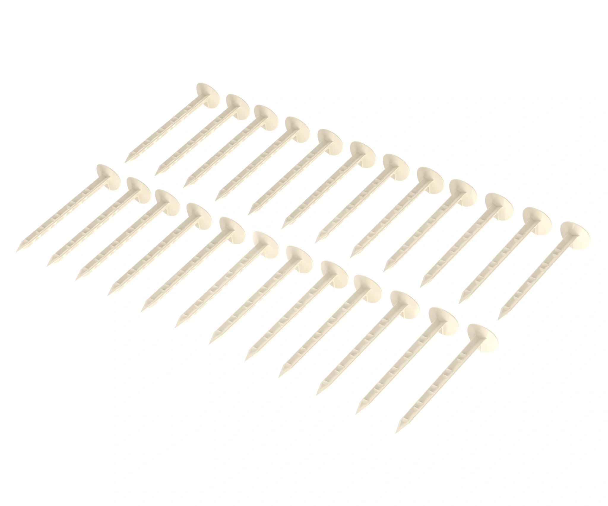 - Надежная конструкция: широкая шляпка диаметром 4 см создает большую площадь опоры, предотвращая проваливание колышка в грунт и обеспечивая плотный прижим материала.