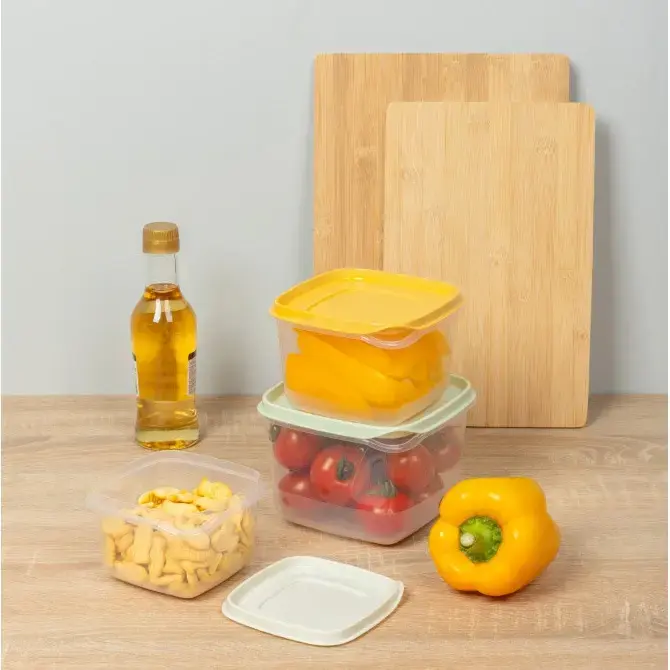 Прозрачный пластик позволяет контролировать остатки продуктов, а цветные крышки добавляют ярких акцентов кухонному пространству. Разный объём (0.45л, 0.75л и 1.2л) делает набор универсальным для любых задач: от хранения специй до порционной заморозки.