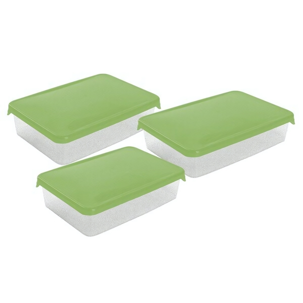Контейнеры изготовлены из прочного безопасного пластика с прозрачными стенками и яркими крышками фисташкового цвета. Прямоугольная форма обеспечивает максимальную функциональность при хранении.