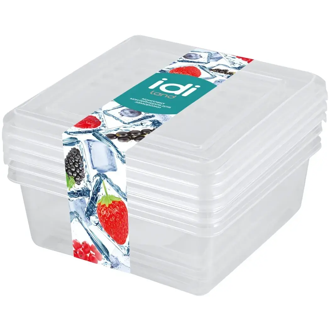 Контейнеры имеют квадратную форму и выполнены из прочного пластика, что делает их легкими и удобными в использовании. Они идеально подходят для хранения как свежих, так и замороженных продуктов. Благодаря прозрачному материалу вы всегда сможете видеть содержимое, что упрощает процесс выбора нужного продукта. Контейнеры снабжены крышками с вентиляционными отверстиями, что позволяет избежать накопления влаги и сохраняет свежесть продуктов.