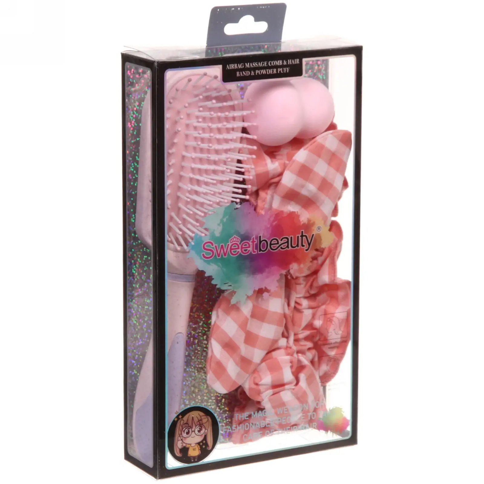 Позаботьтесь о своем комфорте с набором 'Beauty Home', который объединяет все необходимые аксессуары для ухода за волосами и макияжем. Удобная повязка защитит лицо от волос, мягкая расческа бережно распутает пряди, а спонж равномерно нанесет косметику.