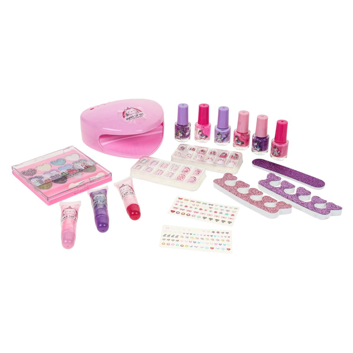 Набор детской косметики создан для девочки, которая любит экспериментировать с образами и мечтает о собственном бьюти-уголке. Внутри — всё необходимое для яркого маникюра и макияжа, чтобы почувствовать себя настоящей принцессой и с удовольствием проводить время за творческой игрой.