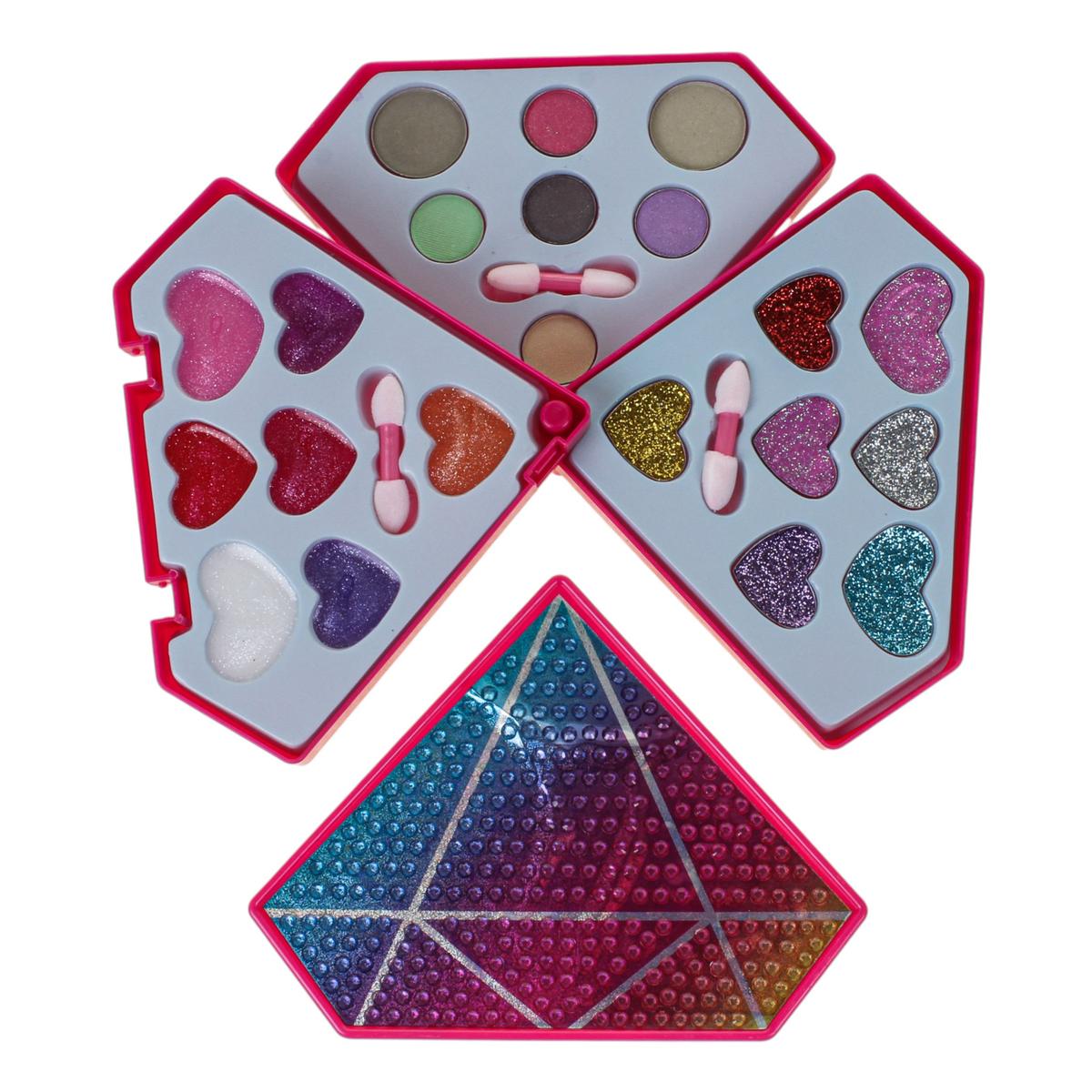 Набор декоративной косметики создан для маленьких модниц, которые любят экспериментировать с образами и чувствовать себя настоящими принцессами. Яркая раскладная палетка в форме бриллианта привлекает внимание с первого взгляда и превращает процесс макияжа в увлекательную игру.