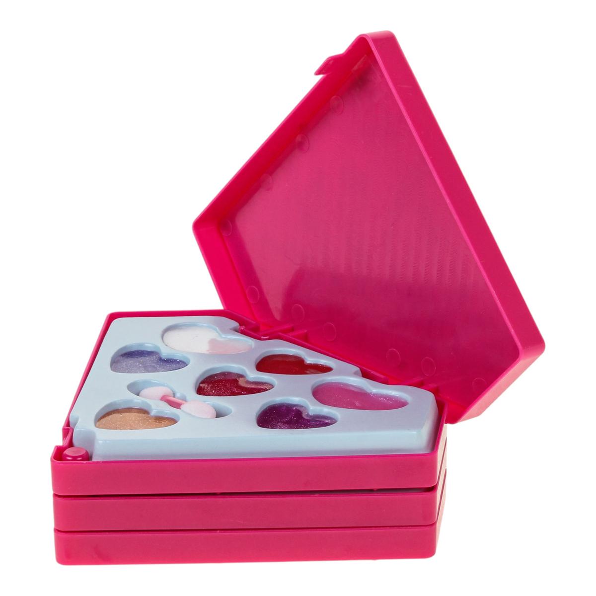 Внутри палетки расположены несколько секций с косметикой разных оттенков. Тени для век, блестки и средства для губ позволяют придумывать нежные повседневные или более выразительные праздничные образы. Удобная многоуровневая конструкция раскрывается поэтапно, открывая доступ ко всем цветам. В комплекте предусмотрены аппликаторы для аккуратного нанесения.