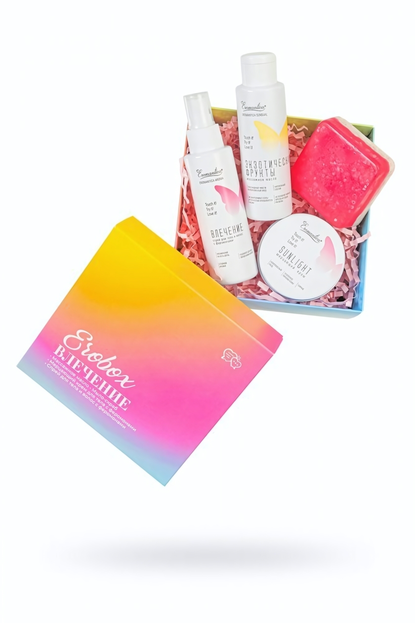 Истинное влечение начинается с любви к себе! Позволь себе насладиться роскошным уходом за телом с готовым ЭРОбоксом Влечение от Eromantica. Этот набор включает в себя все необходимое для создания идеального ритуала красоты, который подарит тебе уверенность и ощущение комфорта.