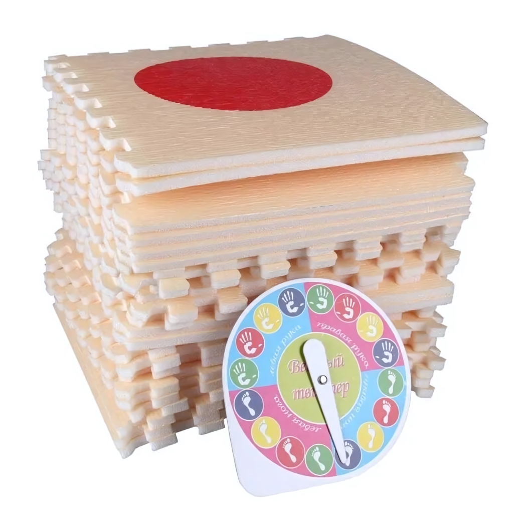 В комплект поставки входит 24 коврика и игровой диск. Цвет ковриков определяется случайным образом из доступного ассортимента (отгружается один товар). Рекомендуется играть на ровной и нескользкой поверхности. Идеально подходит для семейного отдыха, детских праздников, пикников и активных игр на природе.