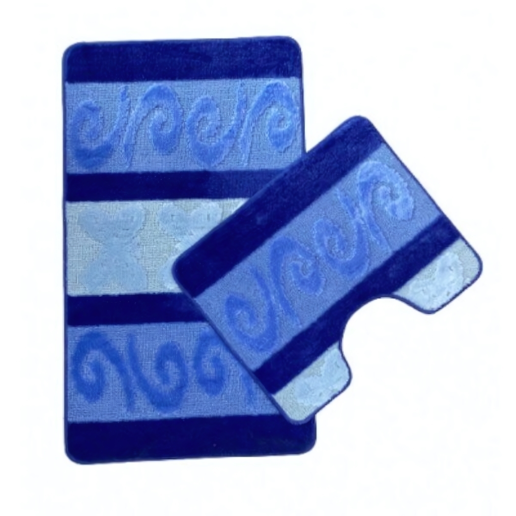 Набор включает два коврика разного размера для максимального удобства. Большой коврик идеально подходит для зоны у ванны или душевой кабины, а компактный коврик с вырезом удобно разместить у раковины. Мягкая текстильная поверхность приятна для ног и легко очищается.